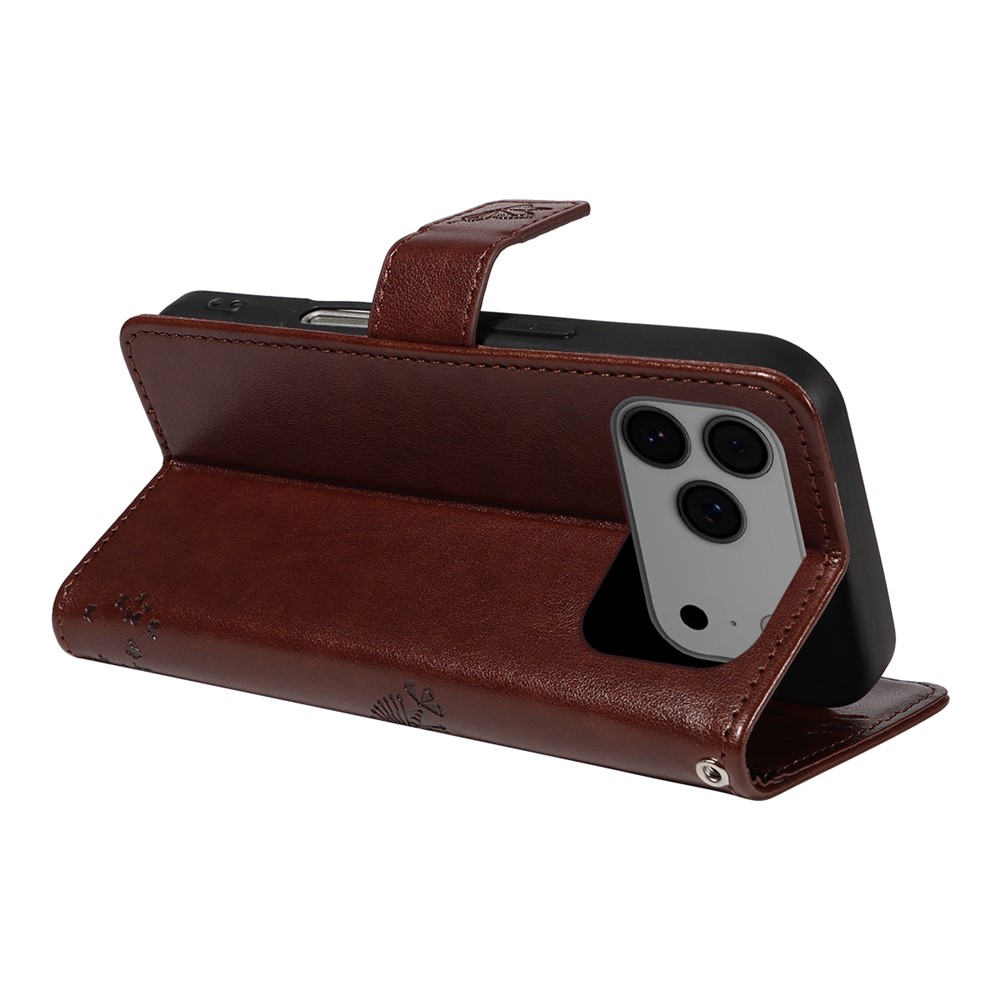 For iPhone 17 Pro Max Phone Case with Stand Cat Tree Pattern Leather Wallet Mobile Cover - Coffee $16.63