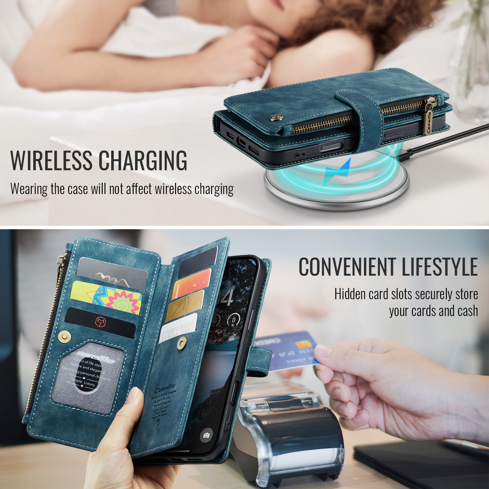 - Large Zipper Space Smoother, softer, and bigger space with the unique zipper design. Ideal for bills, cash, coins, and credit cards. The zipper won’t scratch the phone screen