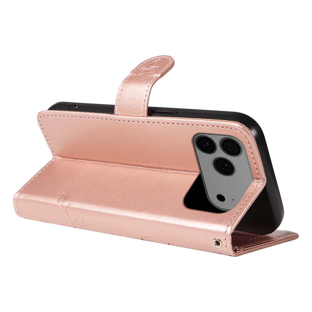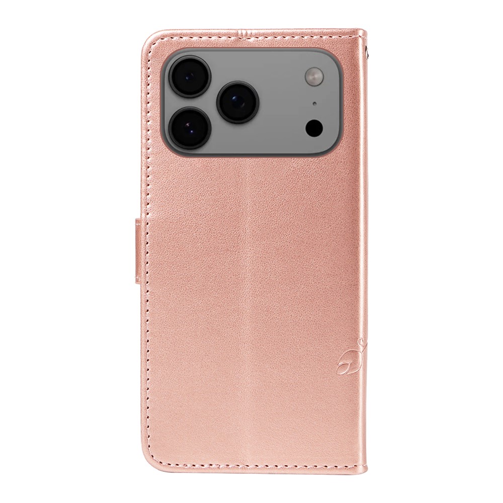For iPhone 17 Pro Max PU Leather Cases Flower Pattern Wallet Stand Phone Cover with Strap – Rose Gold