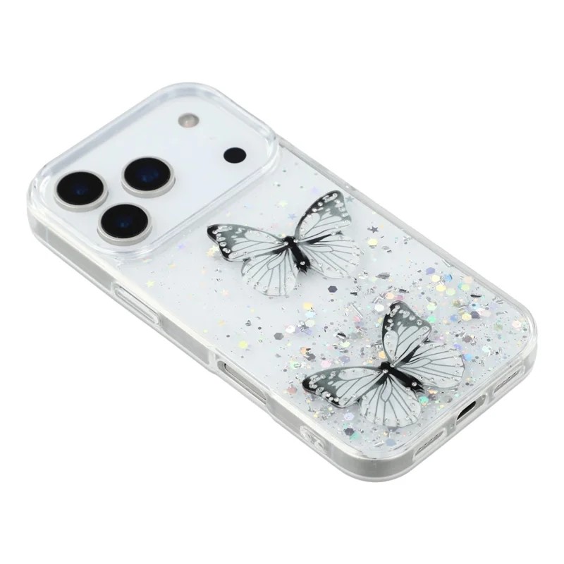 - 3D Butterfly Design The phone case features a 3D PVC butterfly epoxy design with glitter accents, adding a unique and eye-catching look to your phone