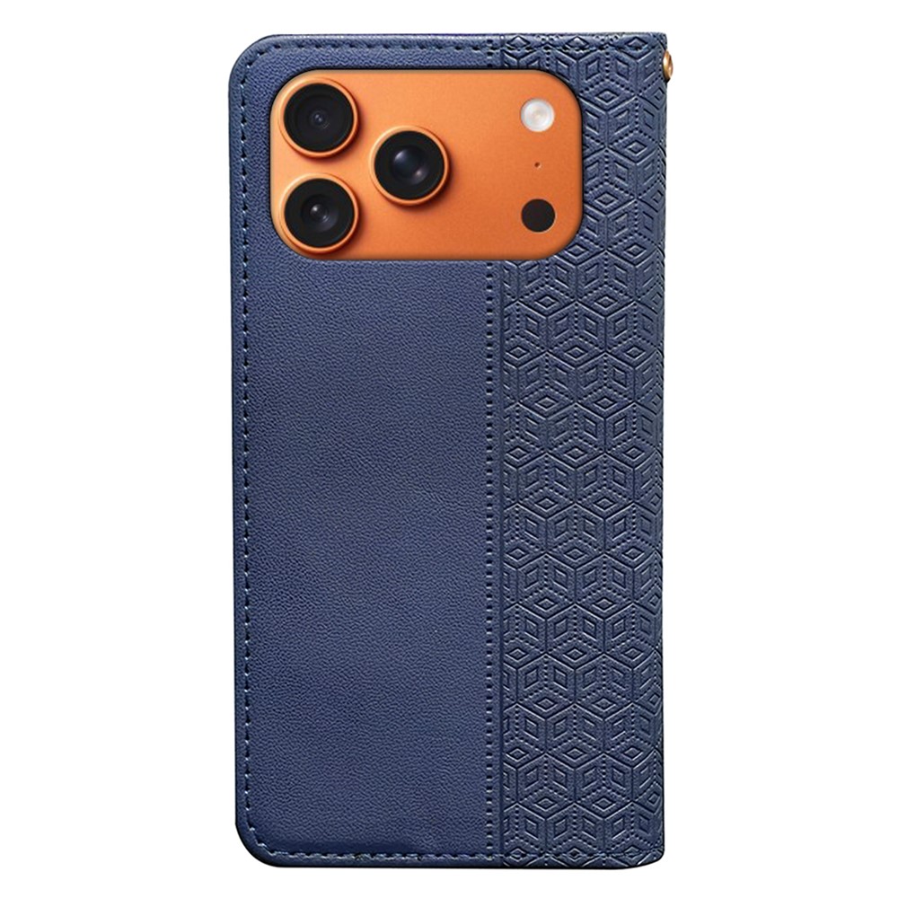 For iPhone 17 Pro Max Wallet Phone Case Checkered Pattern Imprint Leather Flip Cover with Wrist Strap – Blue