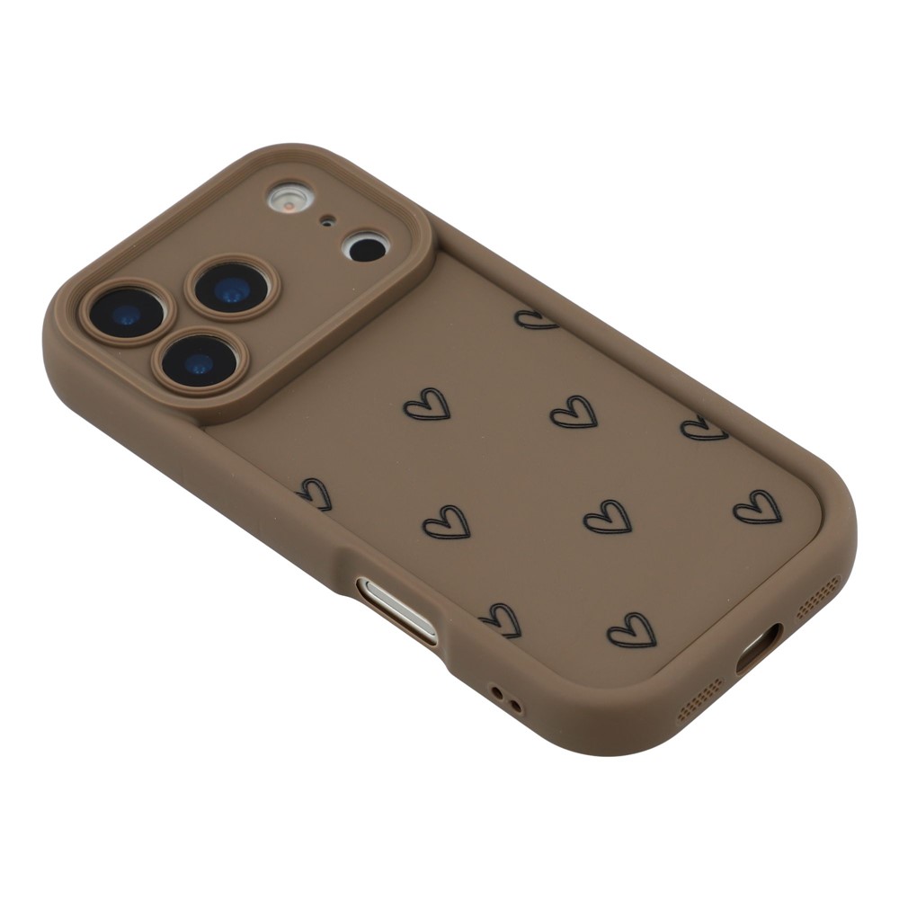 For iPhone 17 Pro Phone Case Heart Pattern TPU Shockproof Protective Cover – Brown