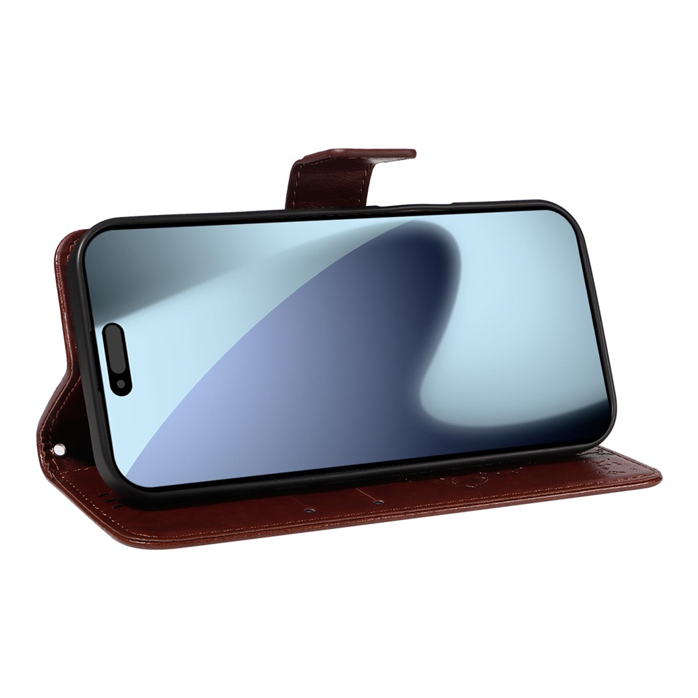 For iPhone 17 Pro Phone Case with Stand Cat Tree Pattern Leather Wallet Mobile Cover – Coffee