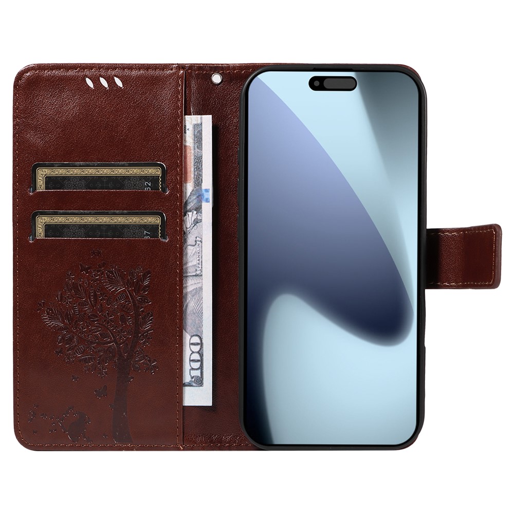 For iPhone 17 Pro Phone Case with Stand Cat Tree Pattern Leather Wallet Mobile Cover - Coffee