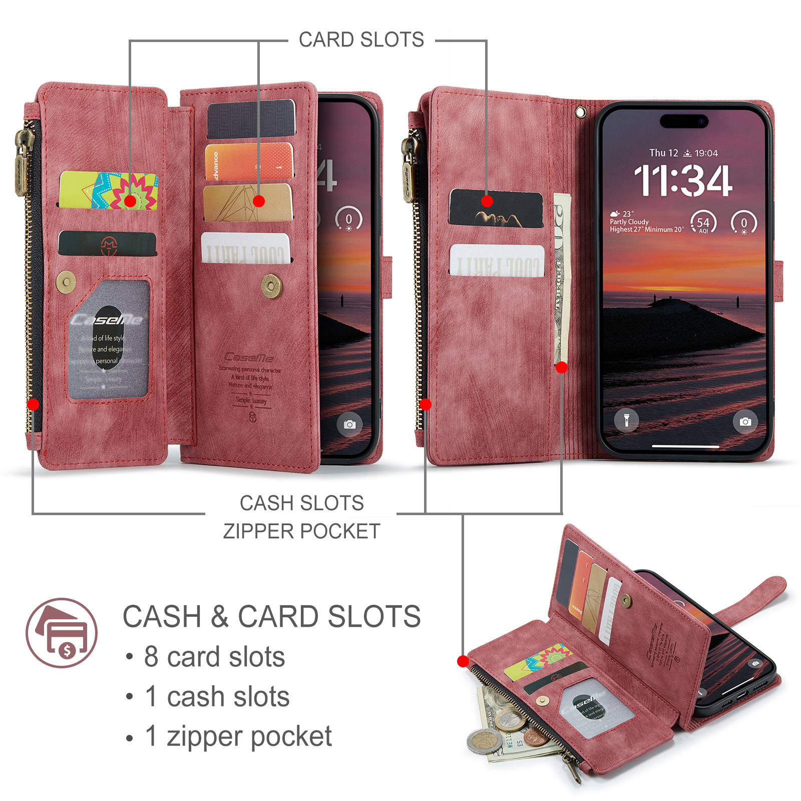 - Cash & Card Slots Features multiple card slots, 1 cash slot, and 1 zipper purse. Conveniently store your essentials while ensuring easy access