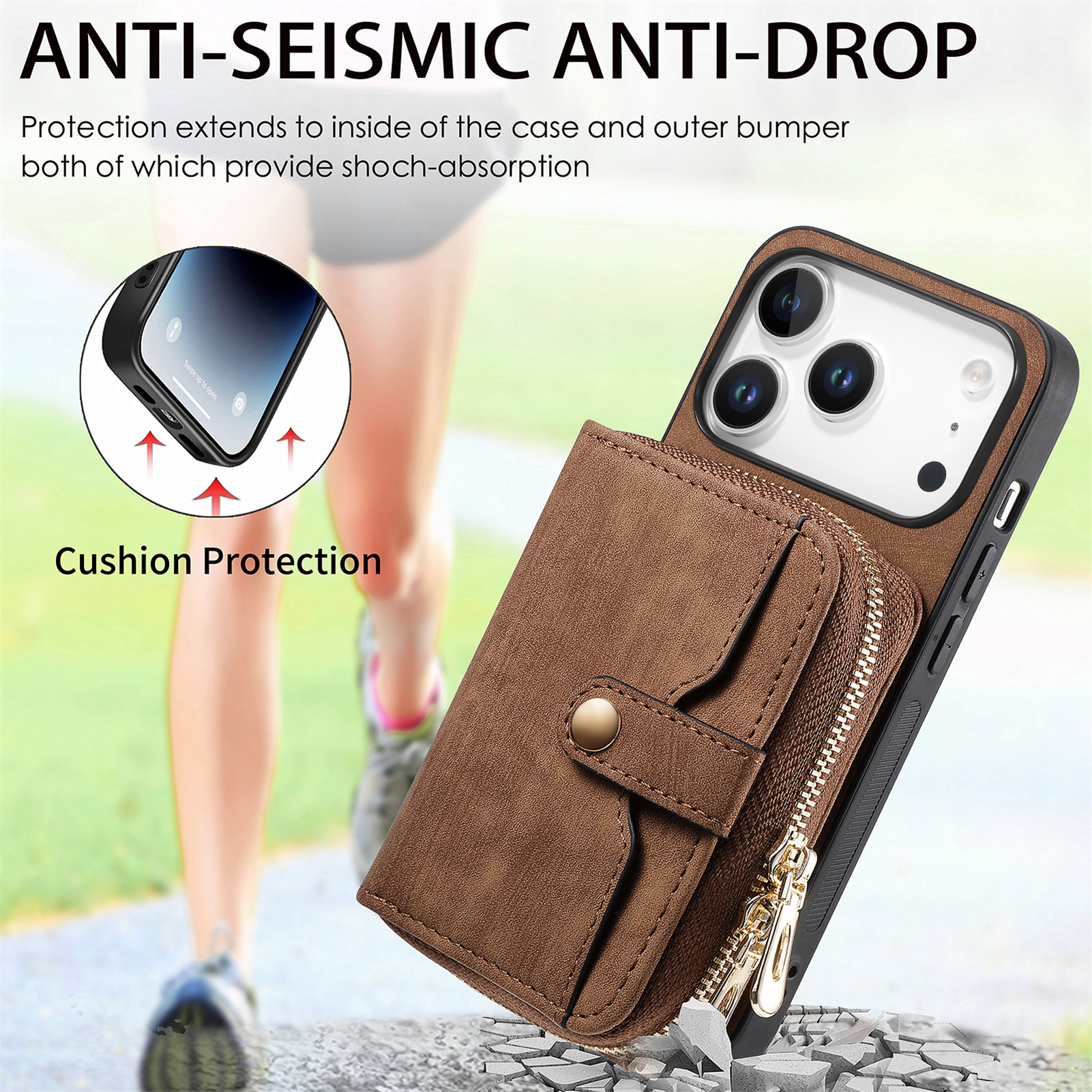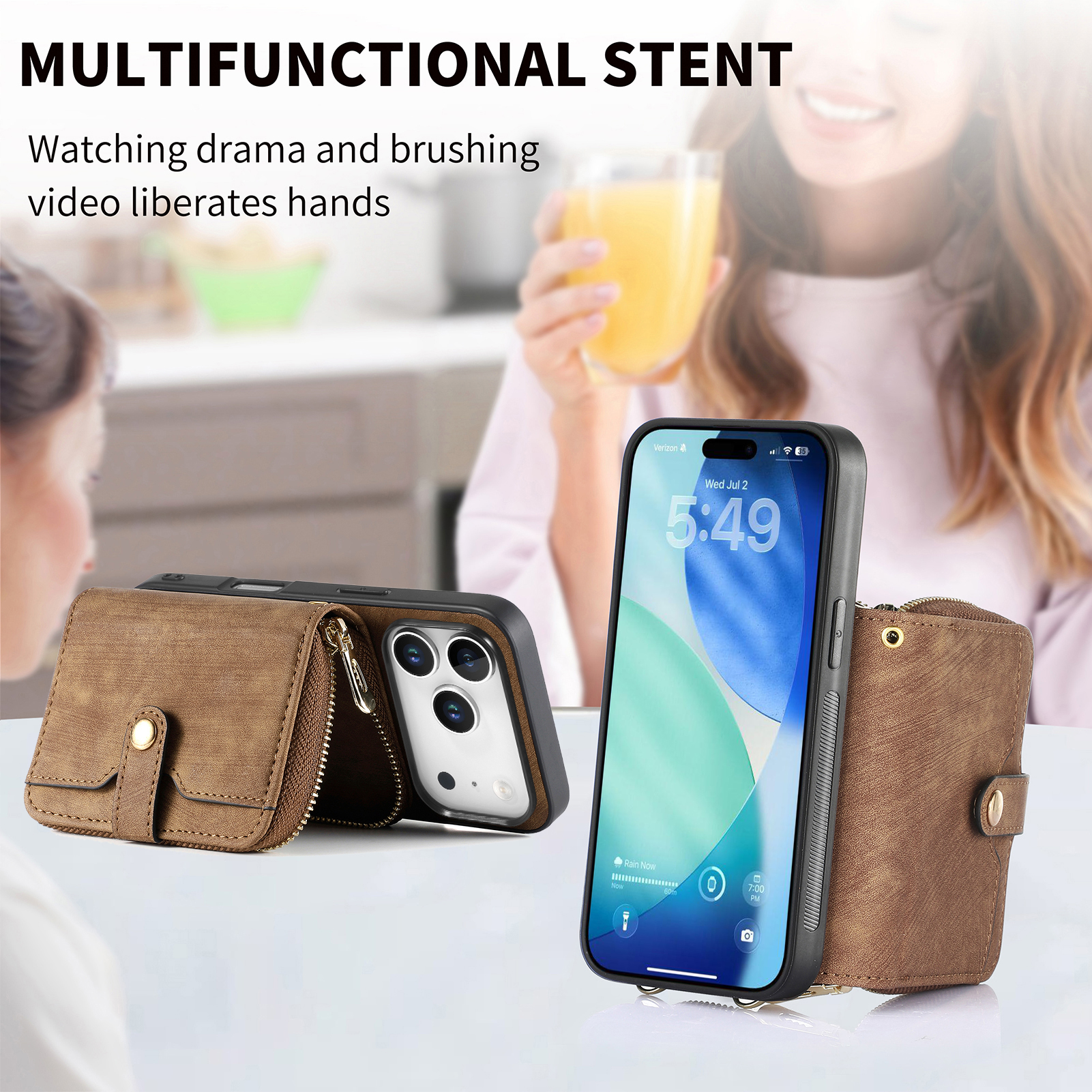 - Zipper Wallet Pocket The zipping pocket design can hold your cards, cash, coins and card keys, to ensure the safety of your belongings by guarantee the complete closure of the wallet part