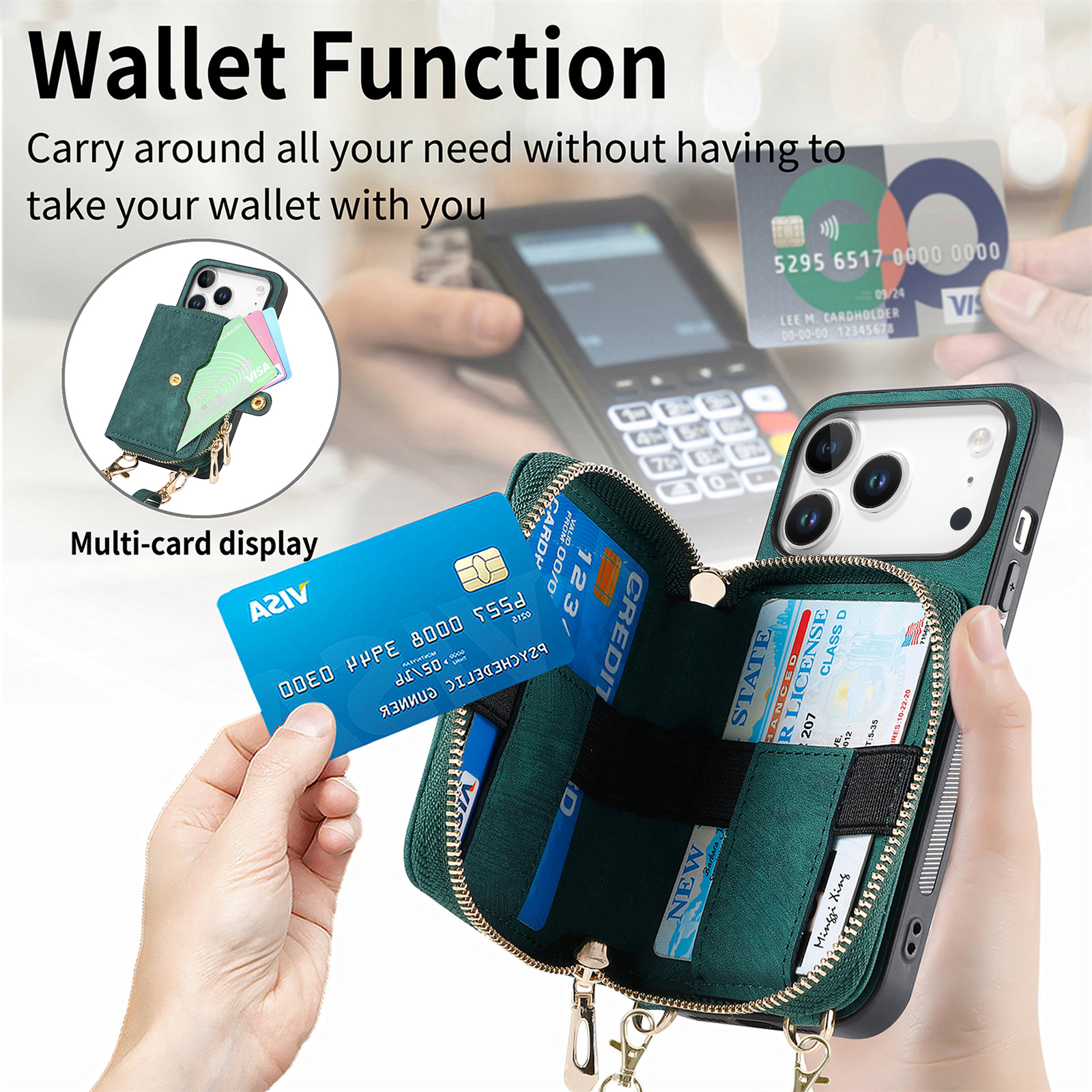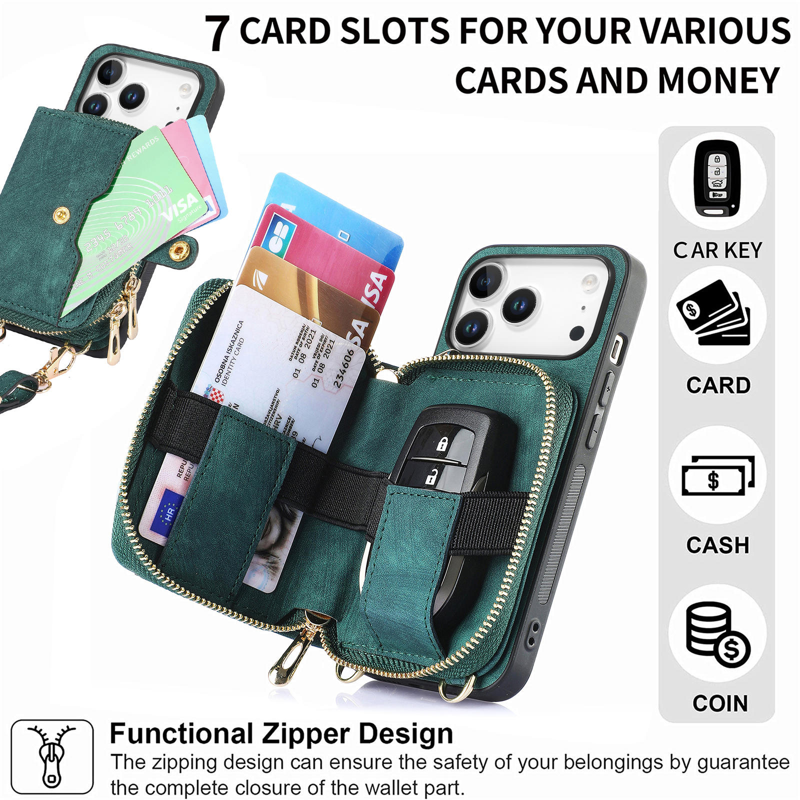 - Zipper Wallet Pocket The zipping pocket design can hold your cards, cash, coins and card keys, to ensure the safety of your belongings by guarantee the complete closure of the wallet part