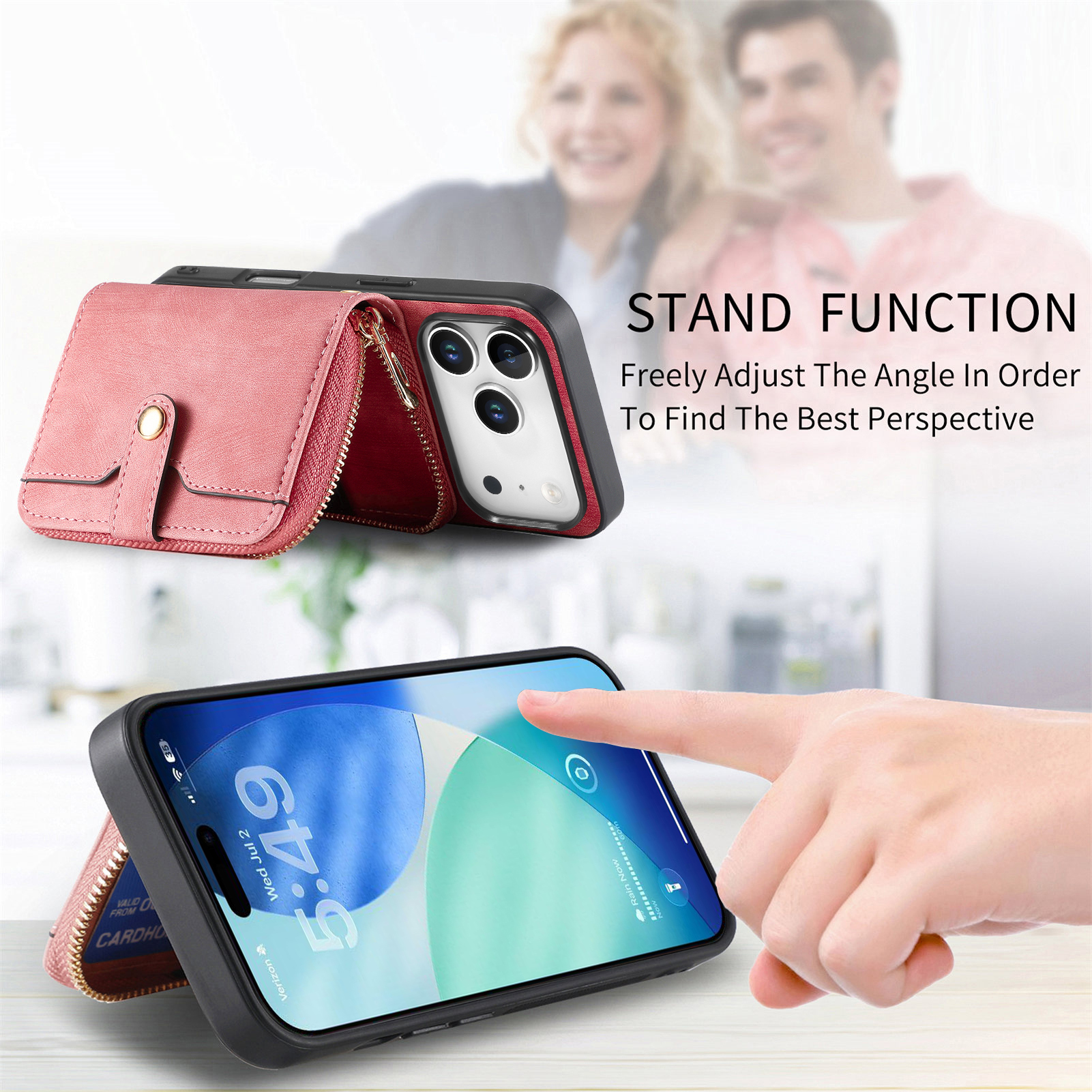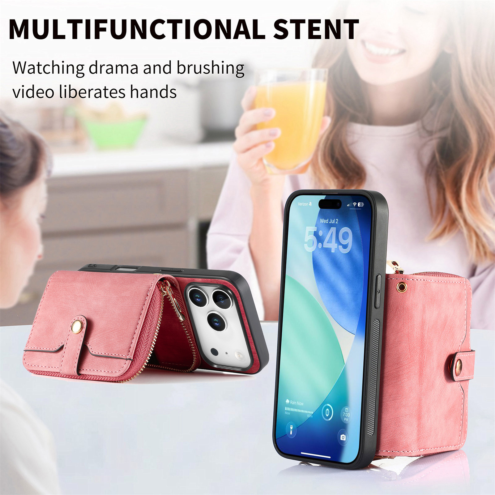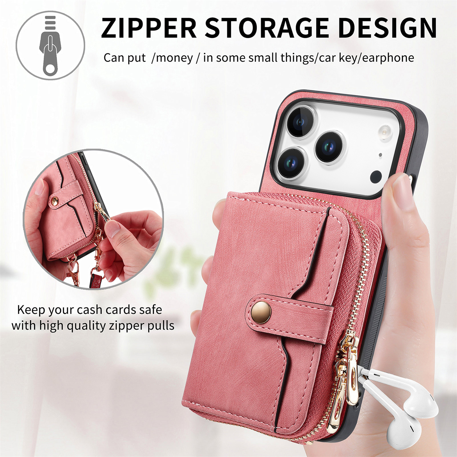 - Zipper Wallet Pocket The zipping pocket design can hold your cards, cash, coins and card keys, to ensure the safety of your belongings by guarantee the complete closure of the wallet part