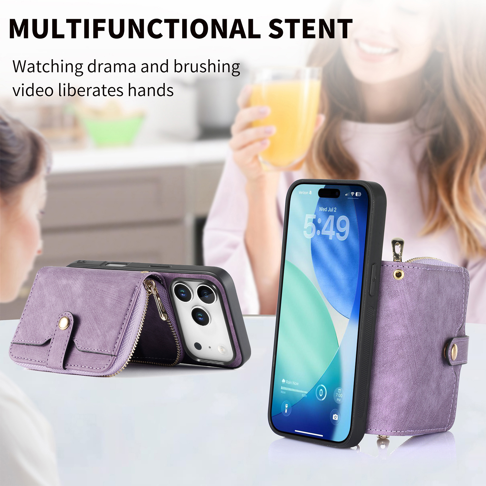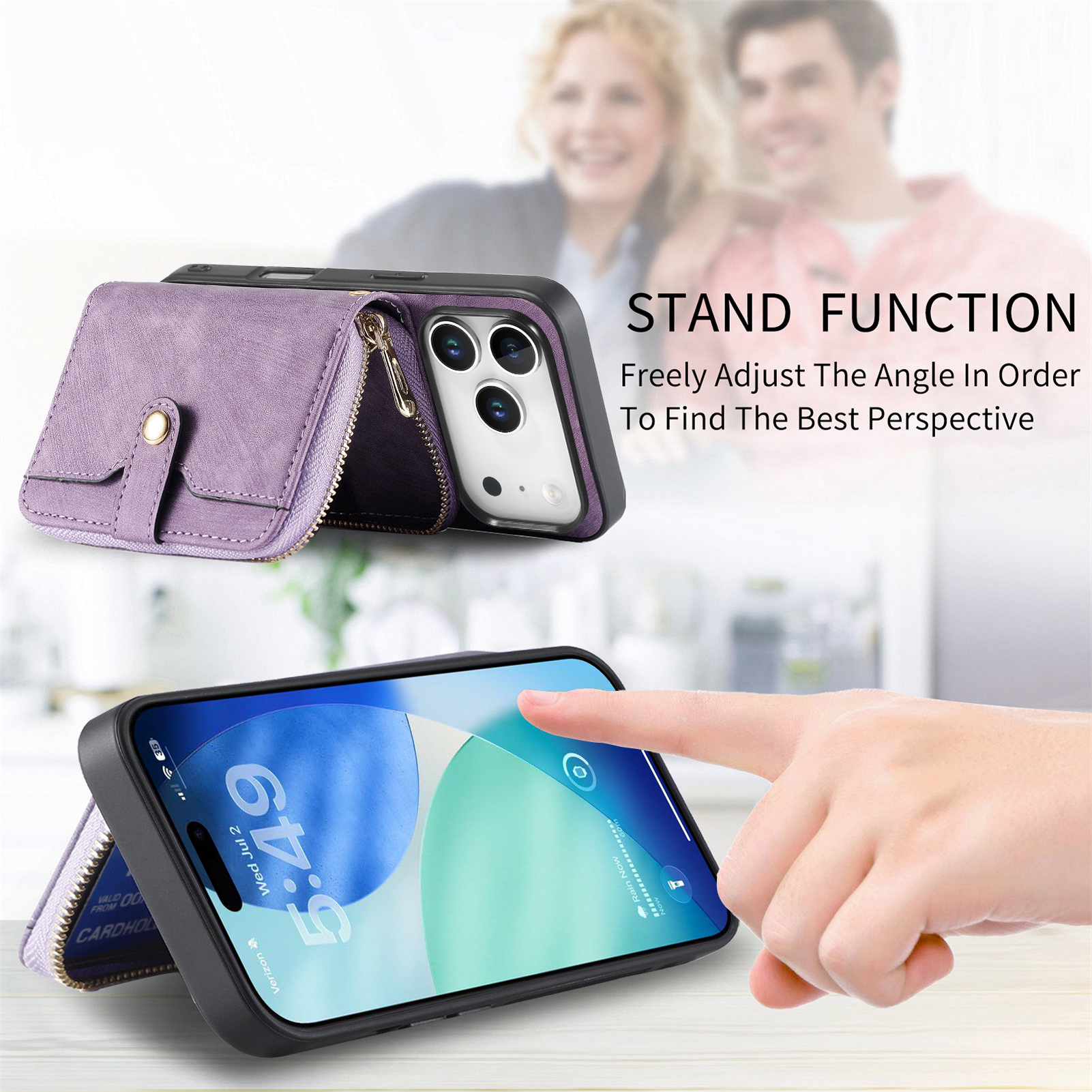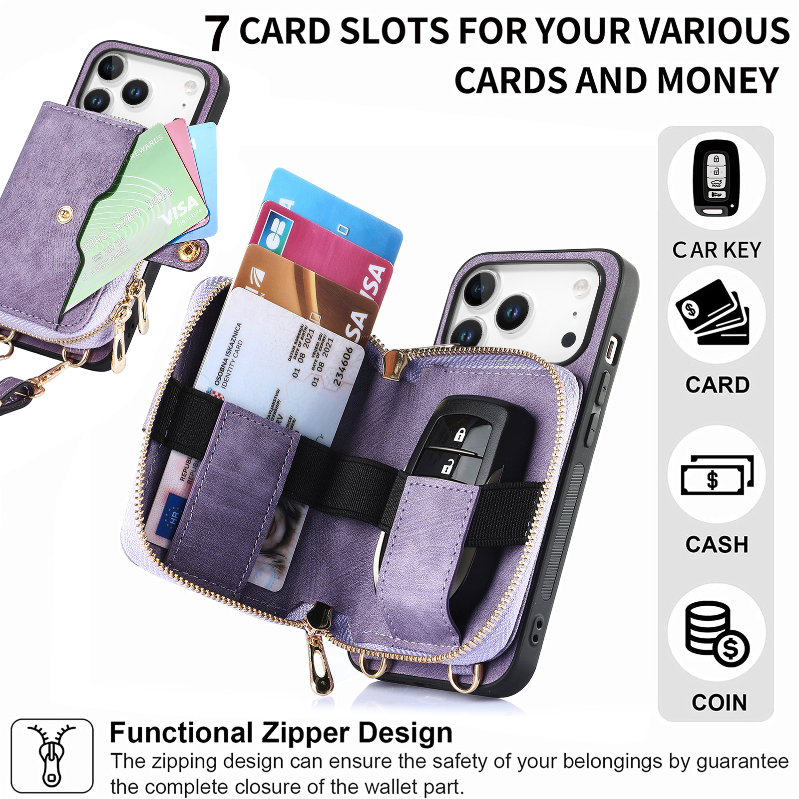 - Zipper Wallet Pocket The zipping pocket design can hold your cards, cash, coins and card keys, to ensure the safety of your belongings by guarantee the complete closure of the wallet part