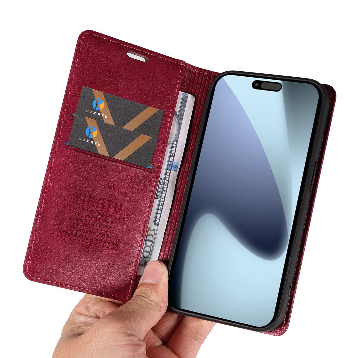 - Premium Material Crafted from high-quality PU leather with a litchi textured finish and a fully frosted TPU interior, offering a luxurious and durable touch