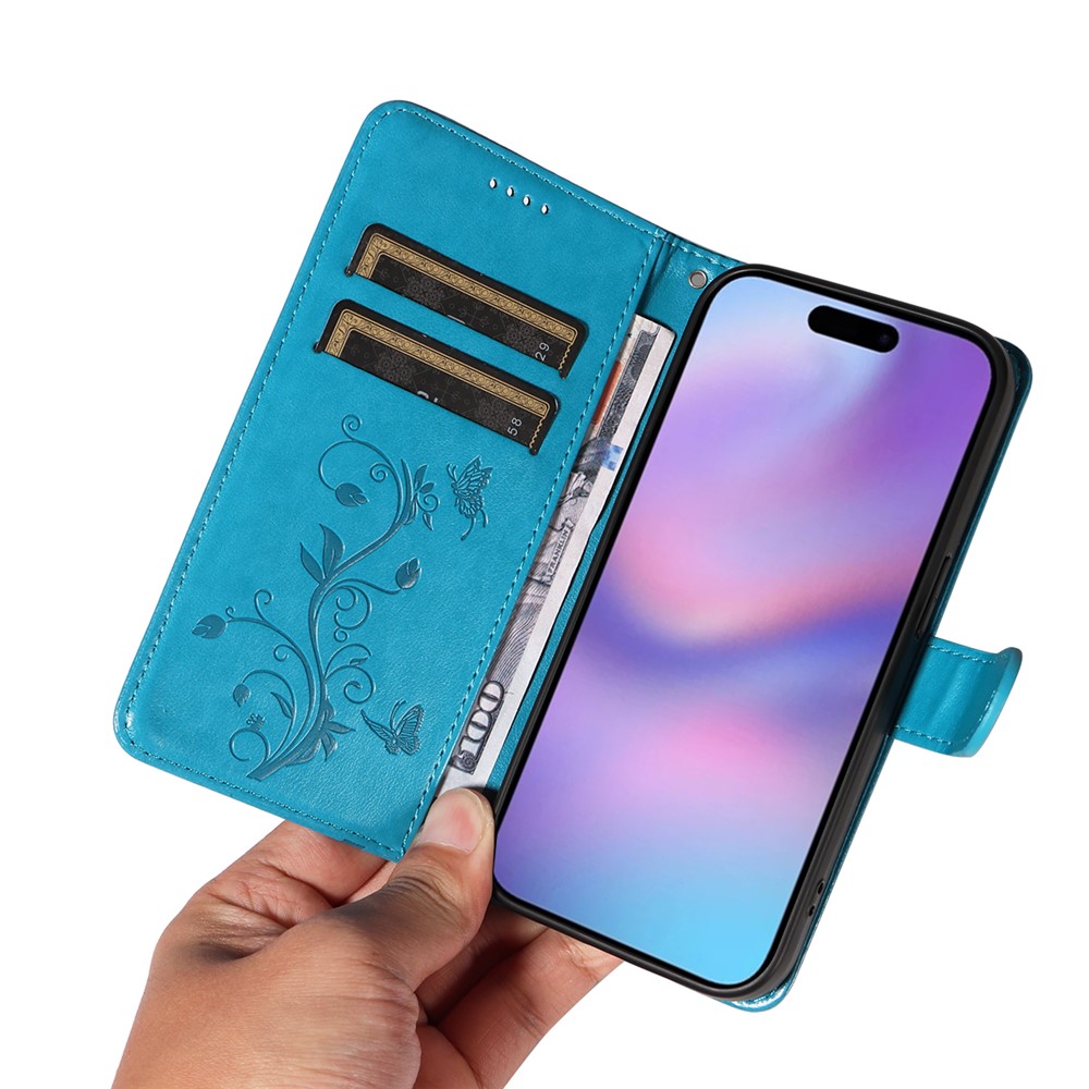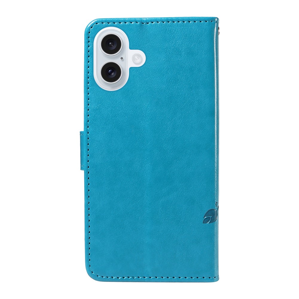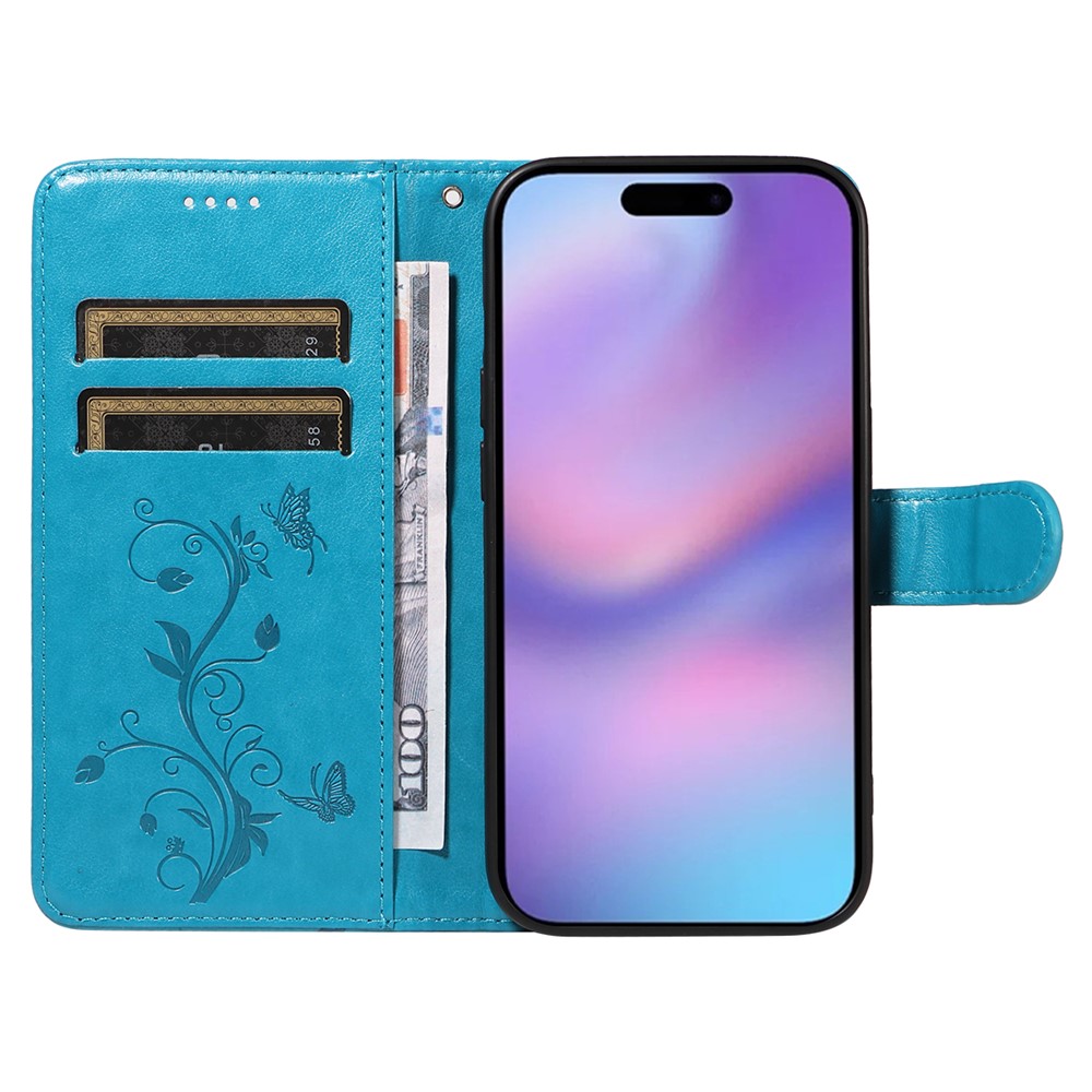 For iPhone 17 PU Leather Cases Flower Pattern Wallet Stand Phone Cover with Strap – Blue