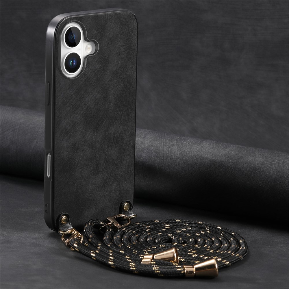 For iPhone 17 Retro Leather Phone Back Cover with Adjustable Strap – Black