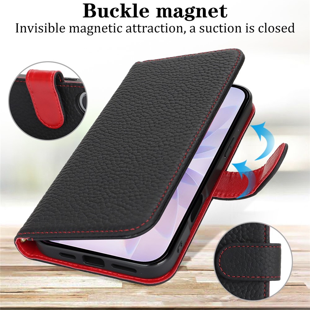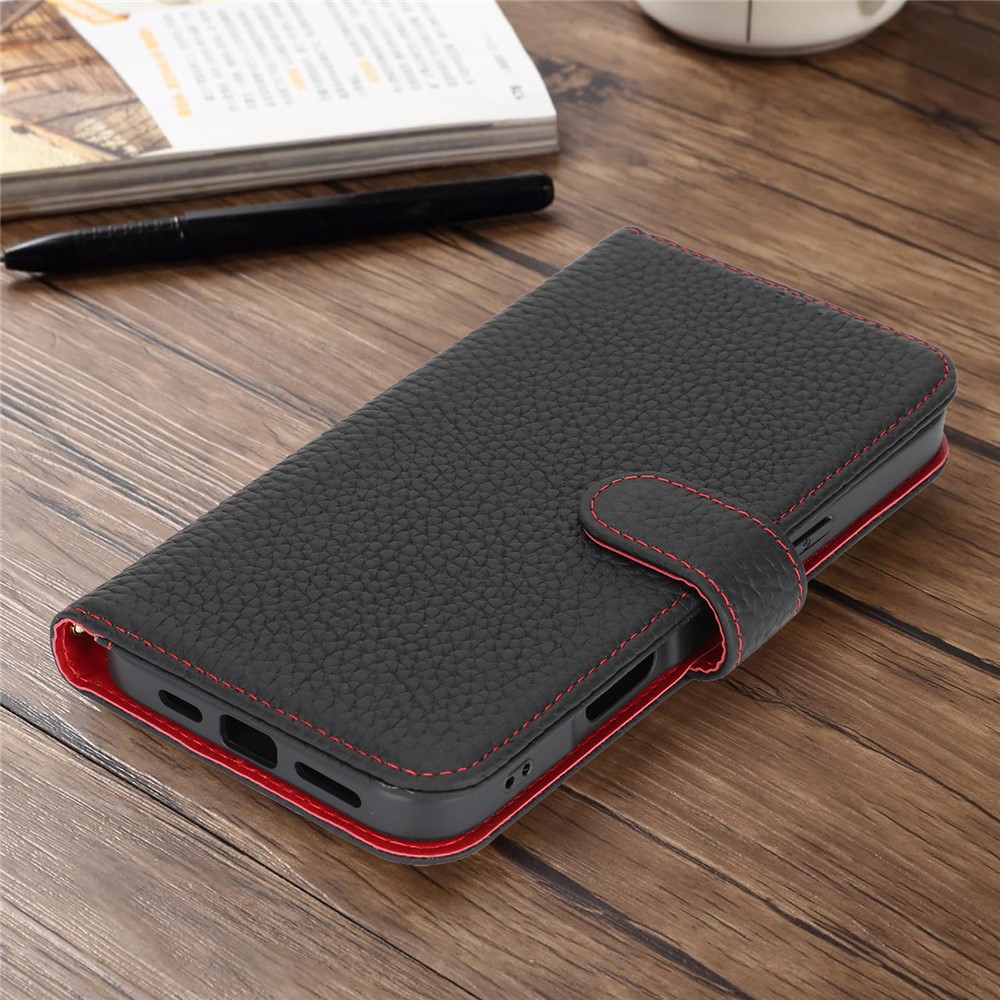 - Premium Material Combination Crafted with a litchi textured genuine cow leather exterior for a premium look and feel, paired with a flexible TPU inner shell that offers excellent shock absorption and long-lasting protection