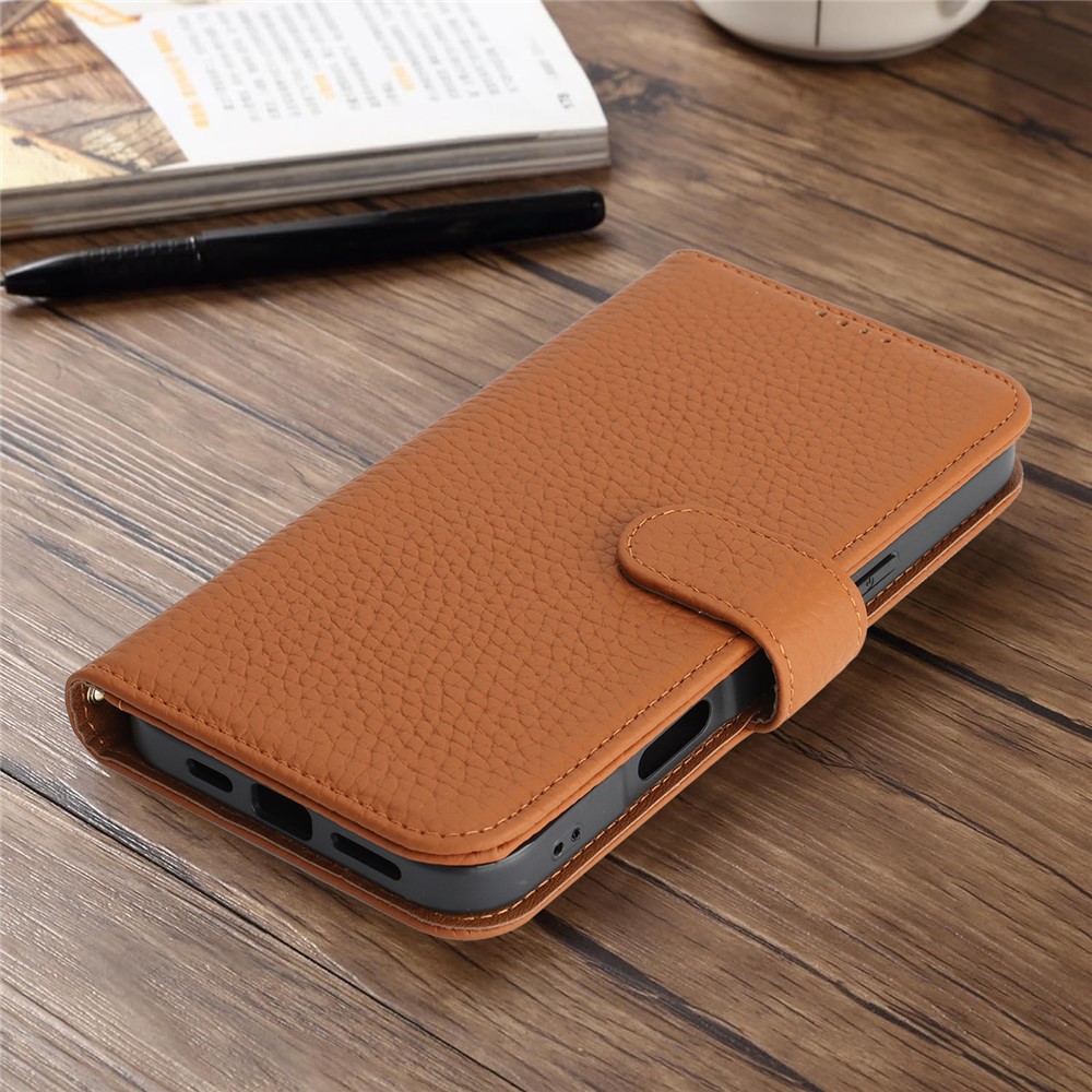 - Premium Material Combination Crafted with a litchi textured genuine cow leather exterior for a premium look and feel, paired with a flexible TPU inner shell that offers excellent shock absorption and long-lasting protection