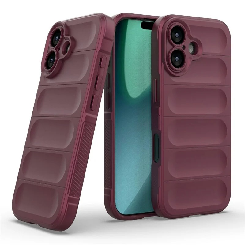 For iPhone 17 TPU Case WANLONFENG HD Series Anti Slip Phone Cover with Tempered Glass – Wine Red