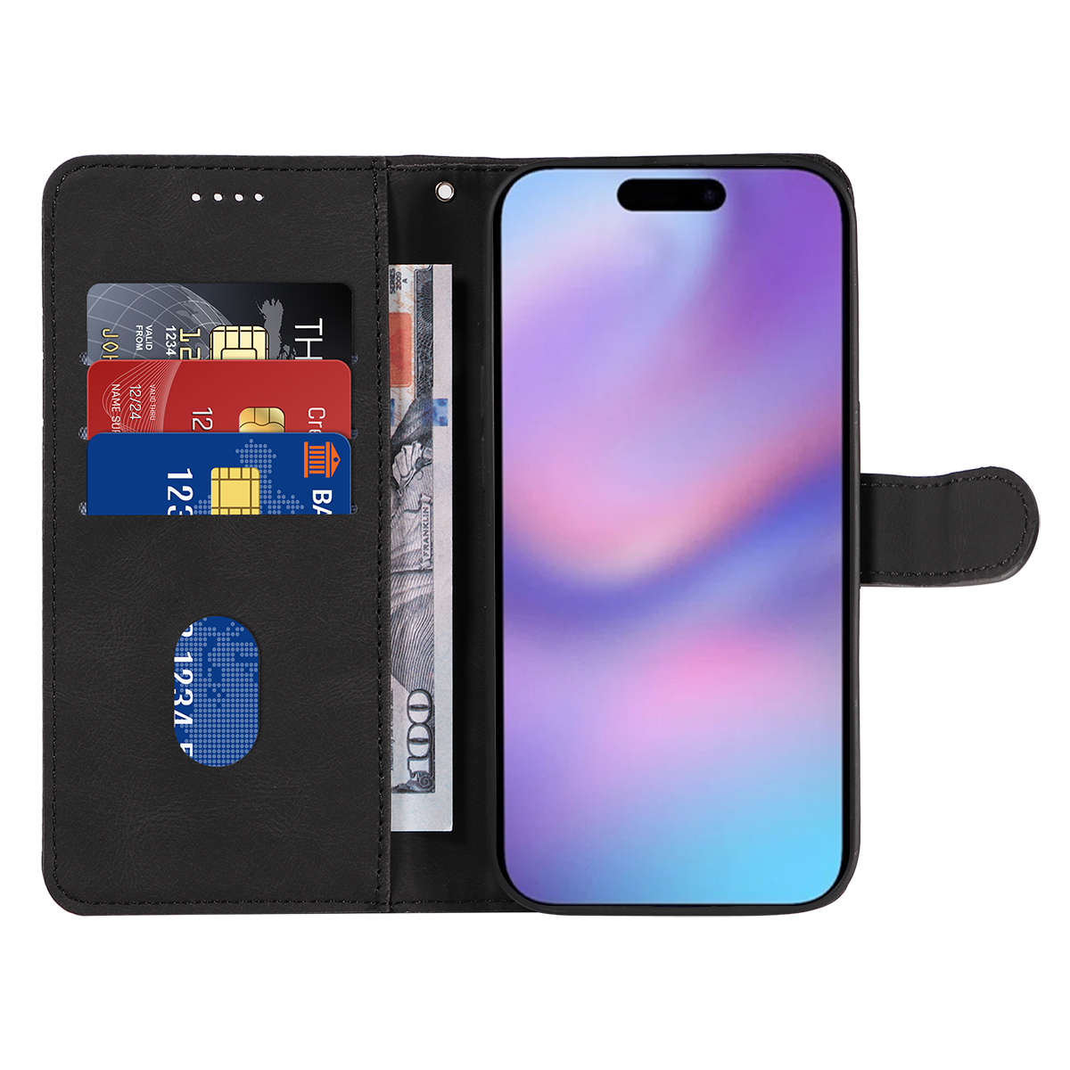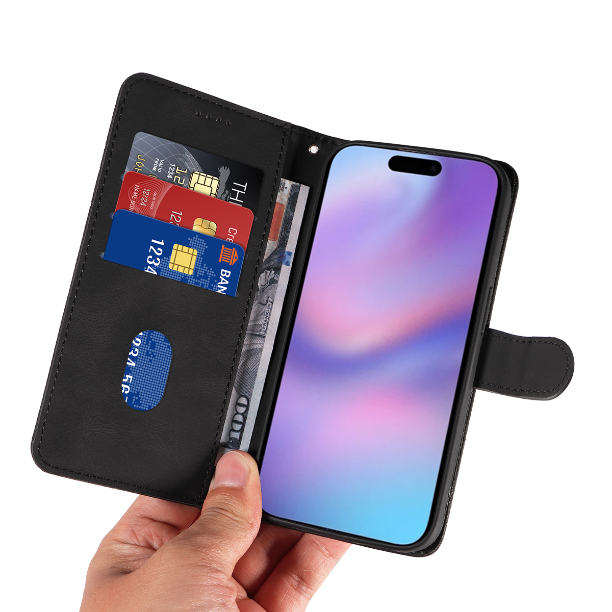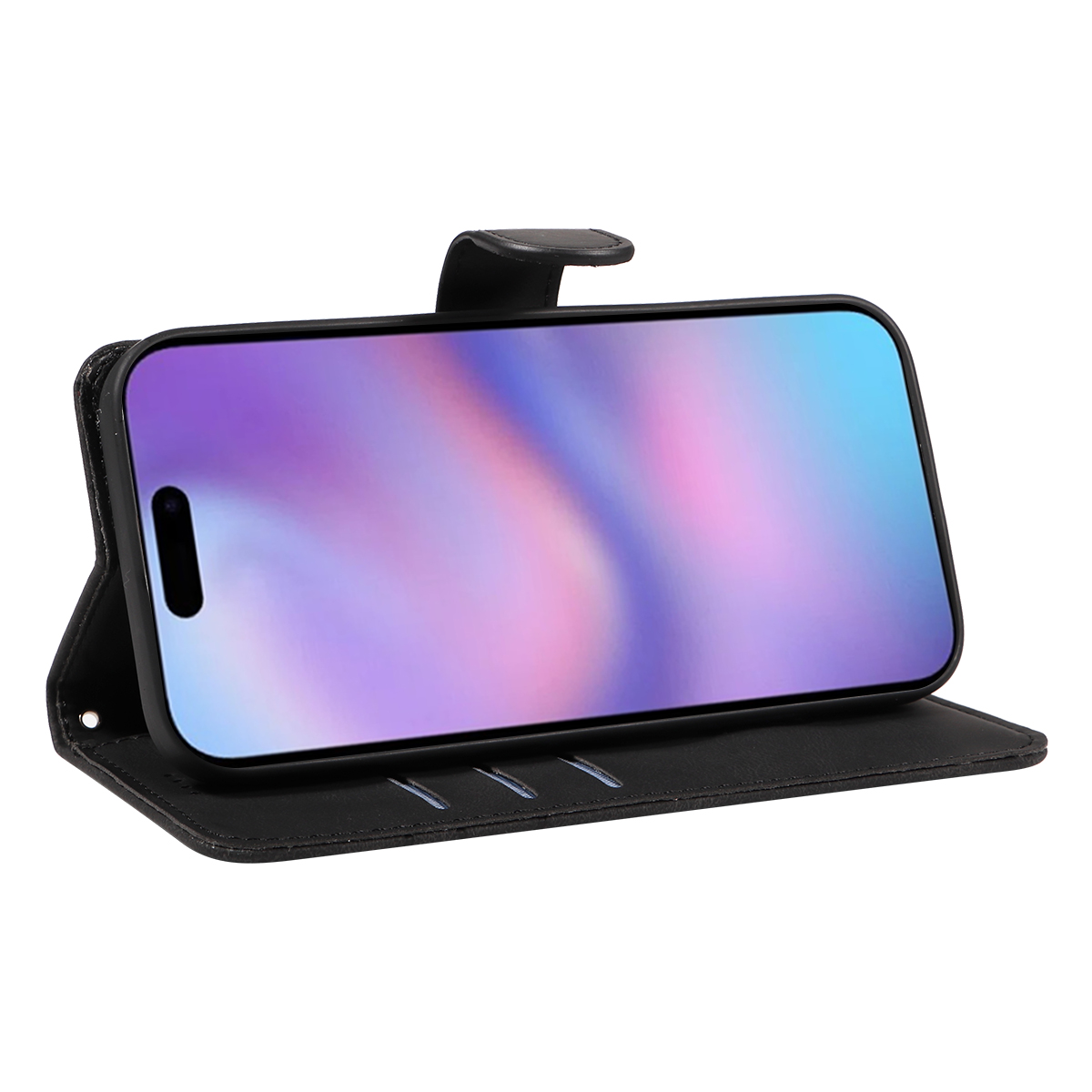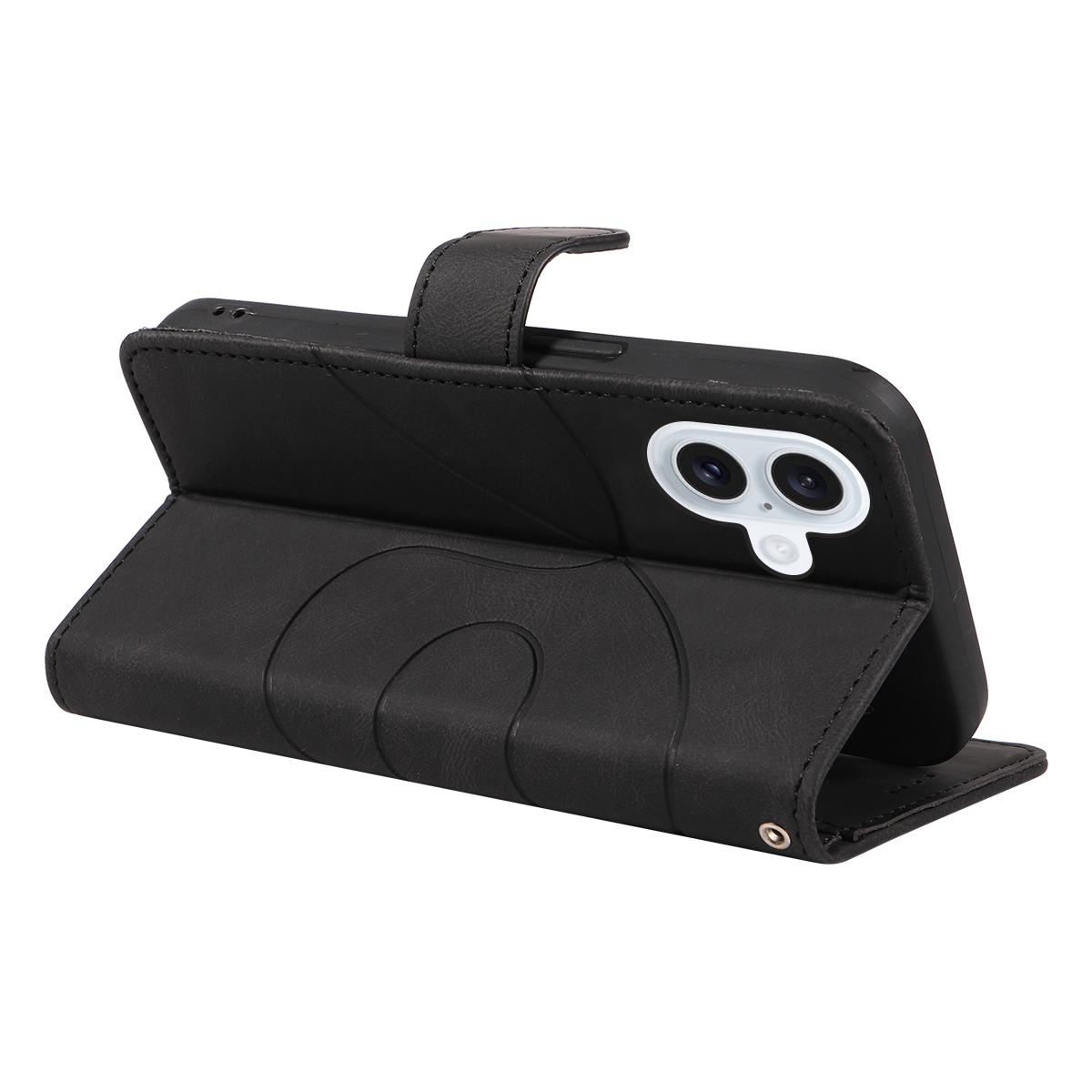 For iPhone 17 Wallet Case Leather Phone Cover Stand with Curved Line Design – Black