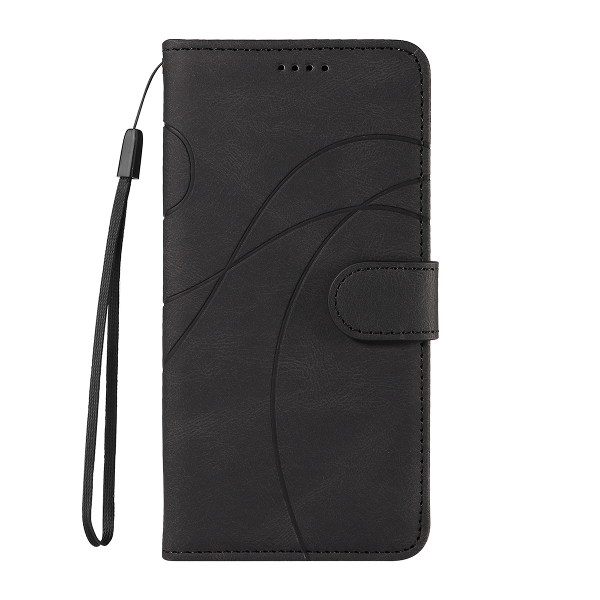 For iPhone 17 Wallet Case Leather Phone Cover Stand with Curved Line Design -  Black