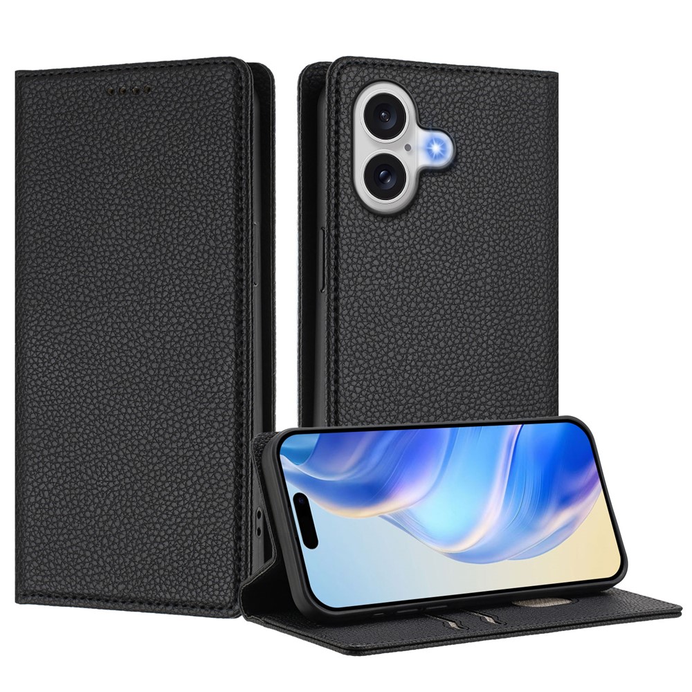 For iPhone 17 Wallet Case RFID Blocking Litchi Texture Leather Mobile Cover – Black