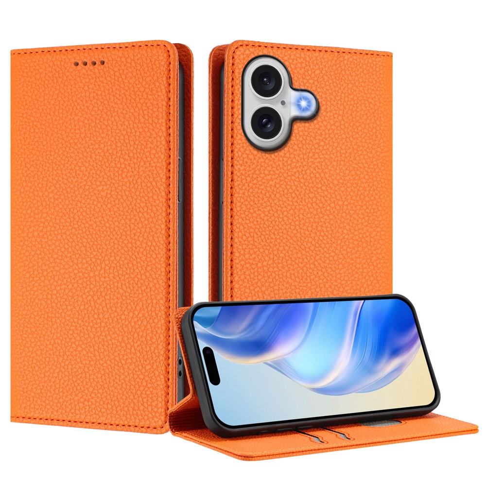 For iPhone 17 Wallet Case RFID Blocking Litchi Texture Leather Mobile Cover – Orange