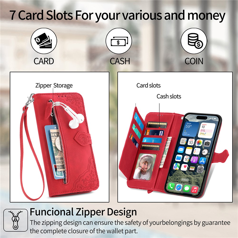 - Functional Wallet Storage The case includes multiple card slots and a high-capacity design for cash and various cards, ensuring convenient travel