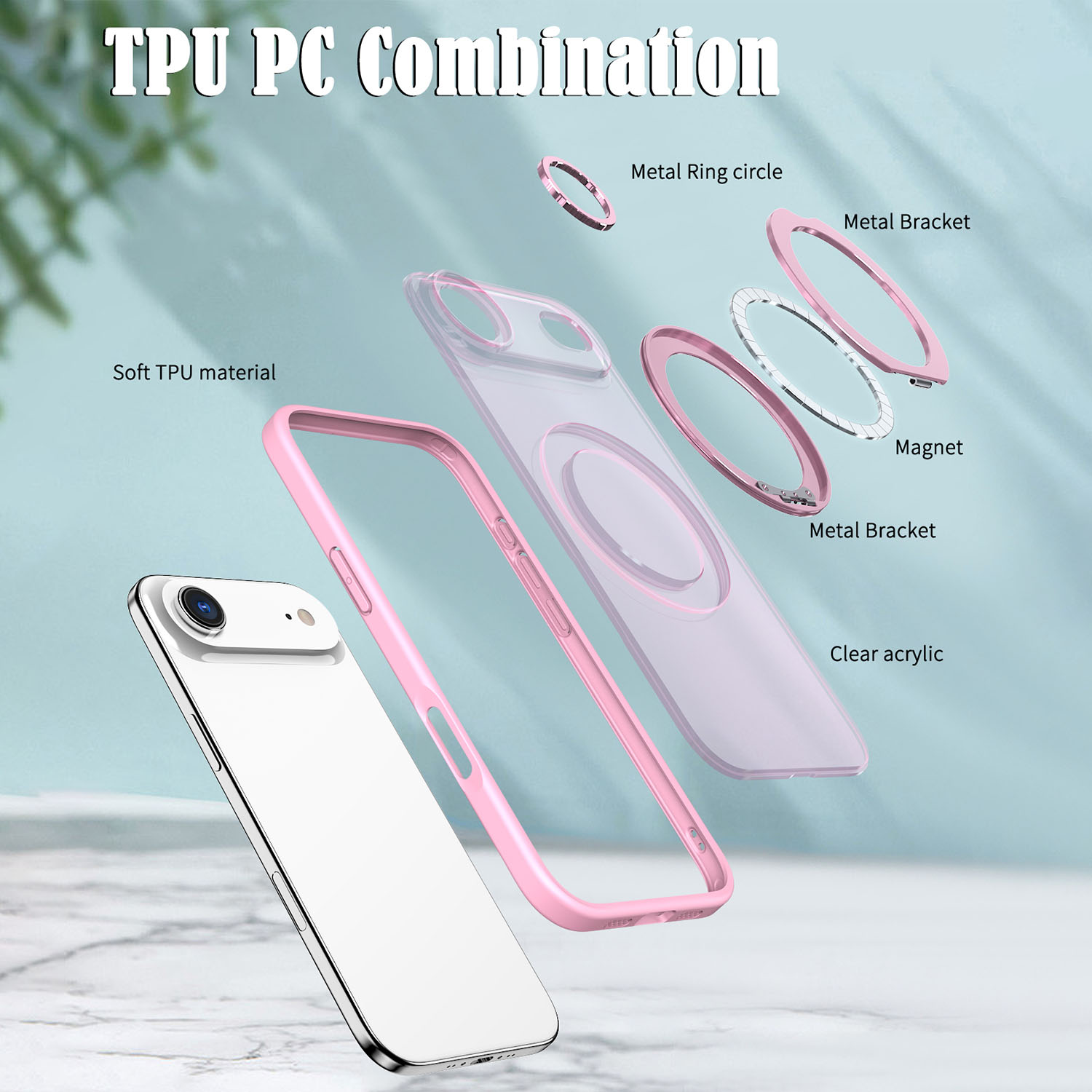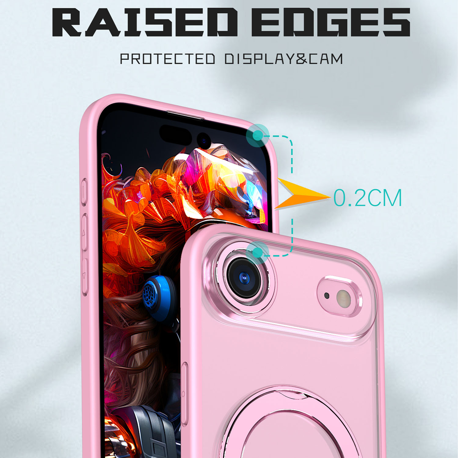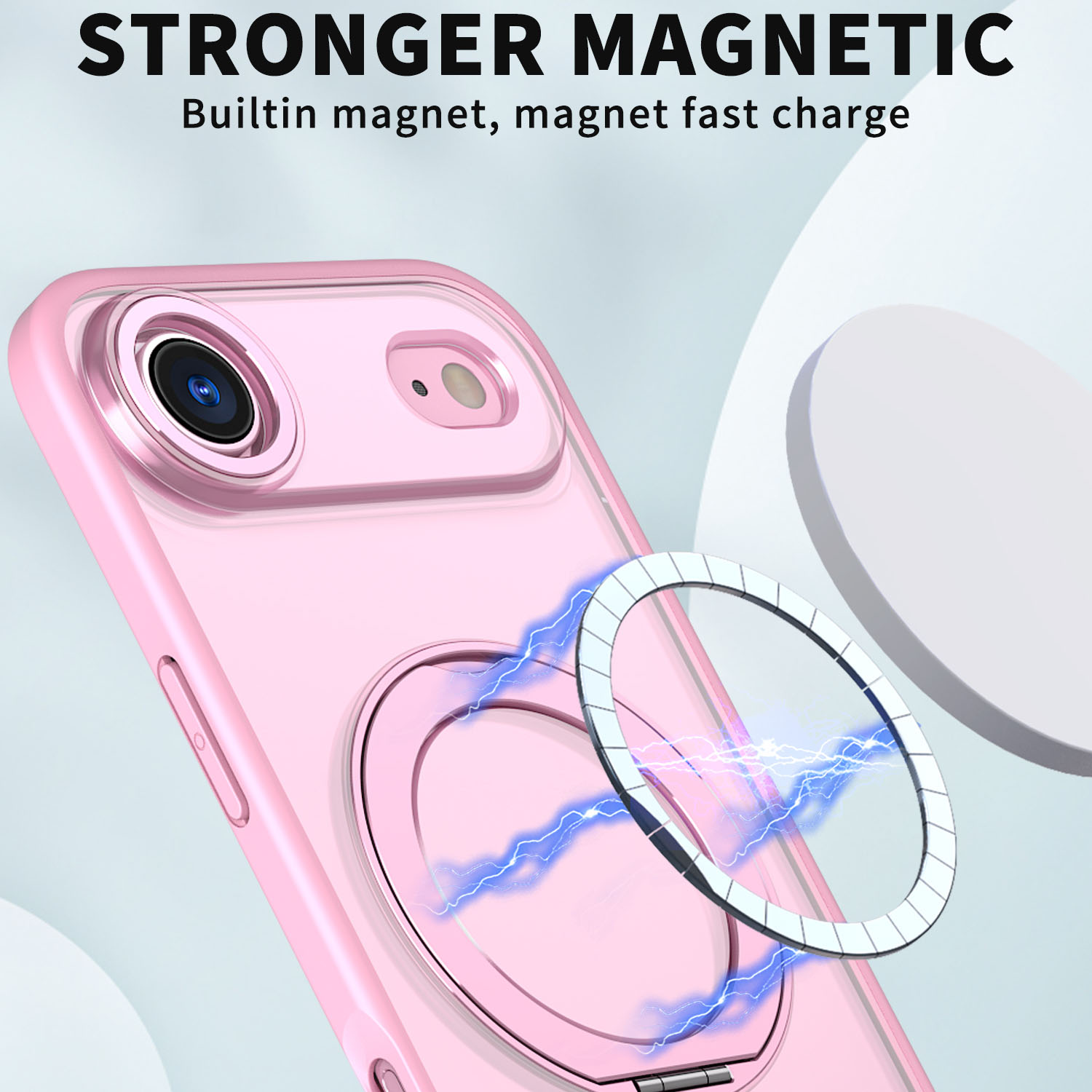 For iPhone Air Case Compatible with MagSafe Skin-touch TPU + PC Phone Cover with Rotating Kickstand – Pink