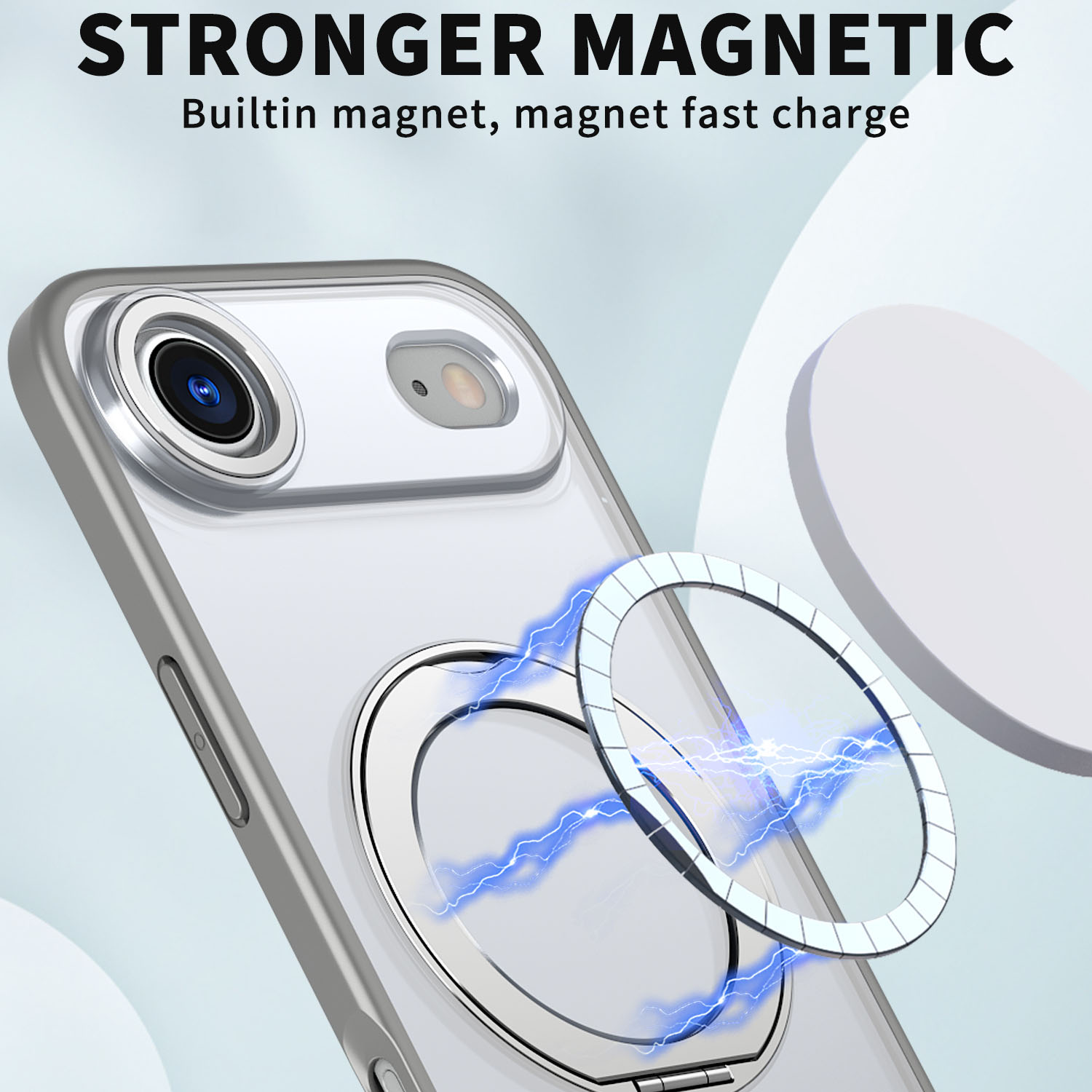 For iPhone Air Case Compatible with MagSafe Skin-touch TPU + PC Phone Cover with Rotating Kickstand – Titanium Grey