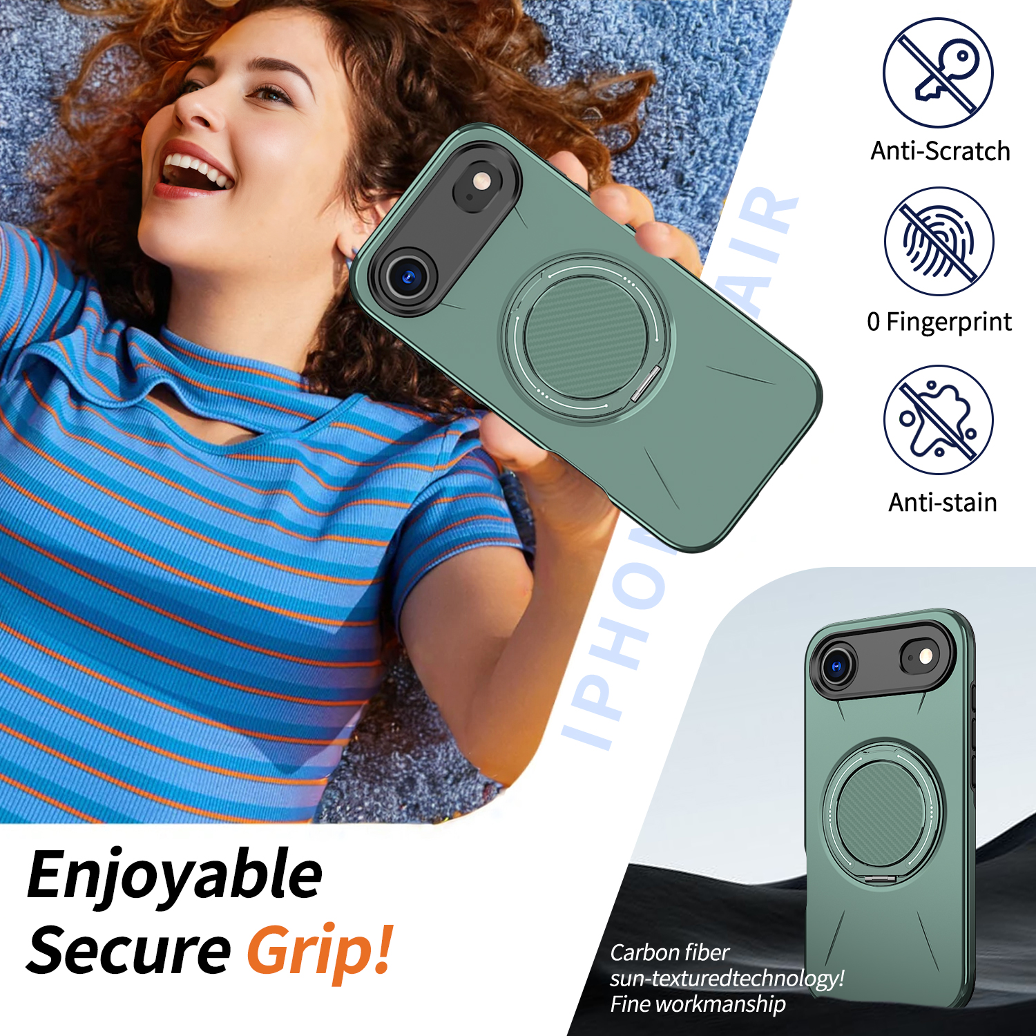 For iPhone Air Case Compatible with MagSafe TPU + PC Back Cover with Rotating Kickstand – Green