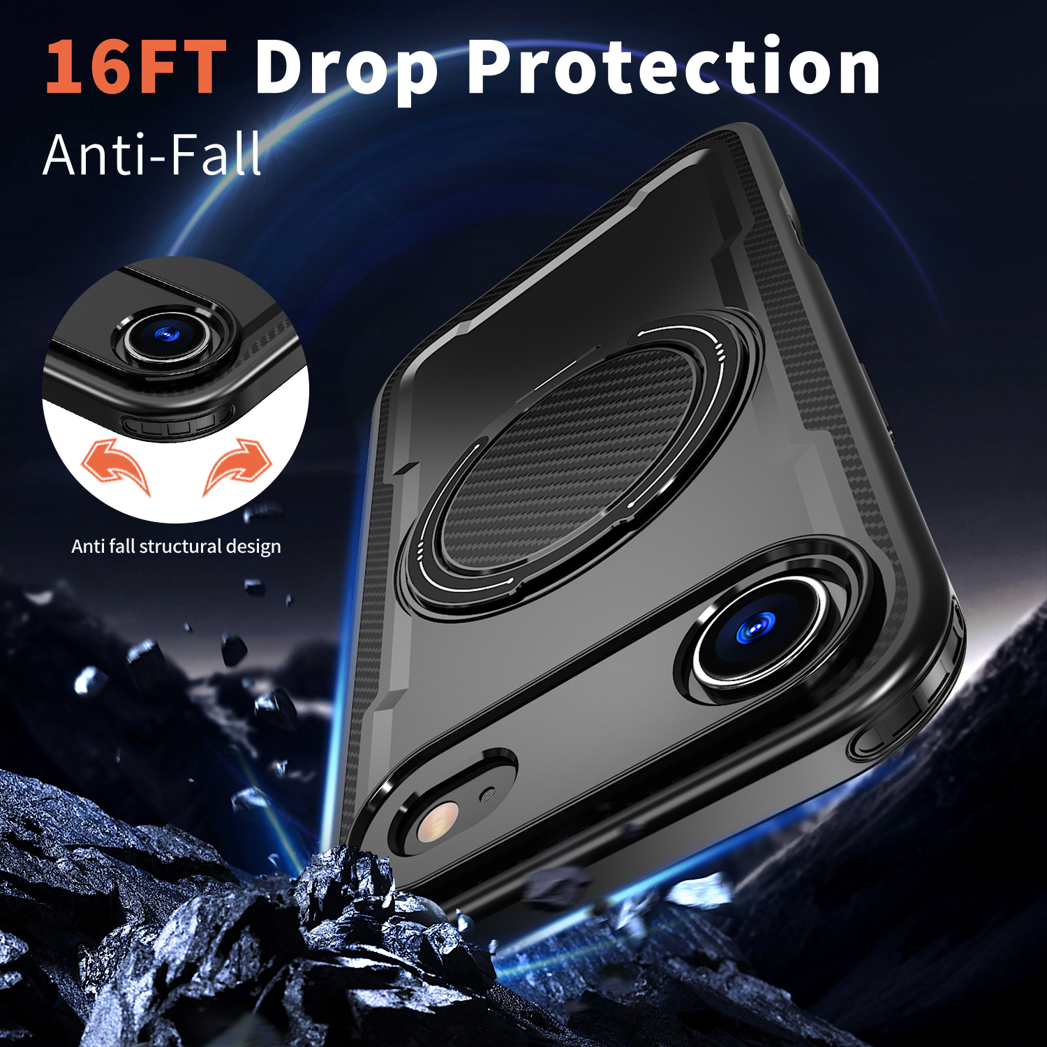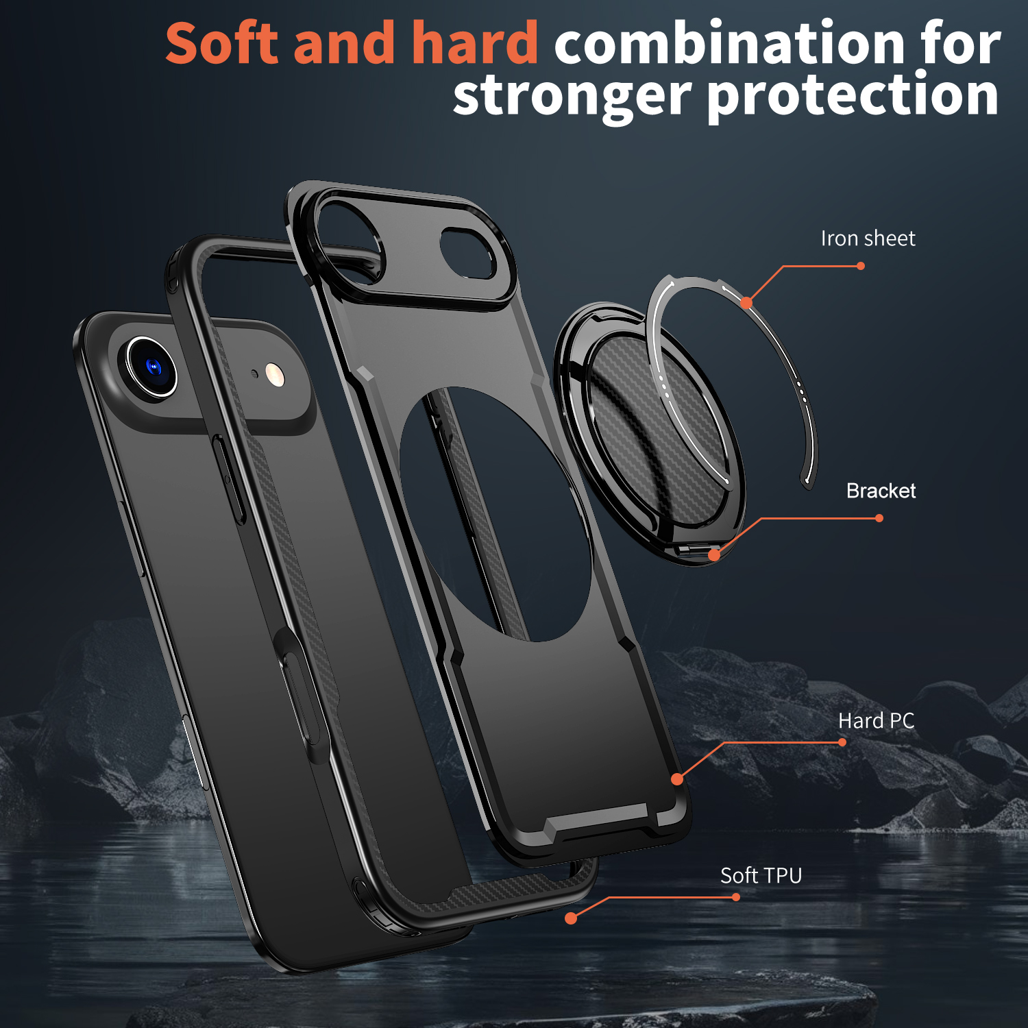 For iPhone Air Case Compatible with MagSafe TPU + PC Phone Cover with Damping Rotating Stand – Black