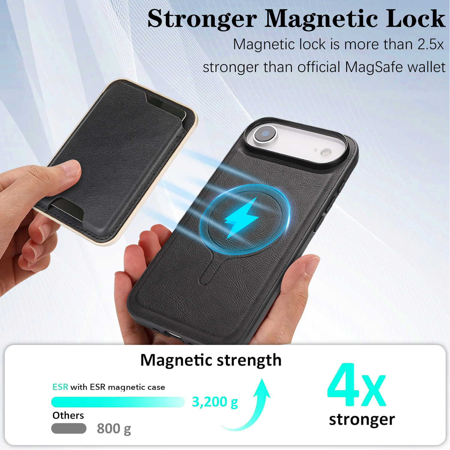 - Powerful MagSafe Compatibility This ultra-thin leather case features enhanced magnetic strength, over 2.5 times stronger than for official MagSafe wallet, ensuring secure attachment and compatibility with MagSafe accessories and wireless charging.