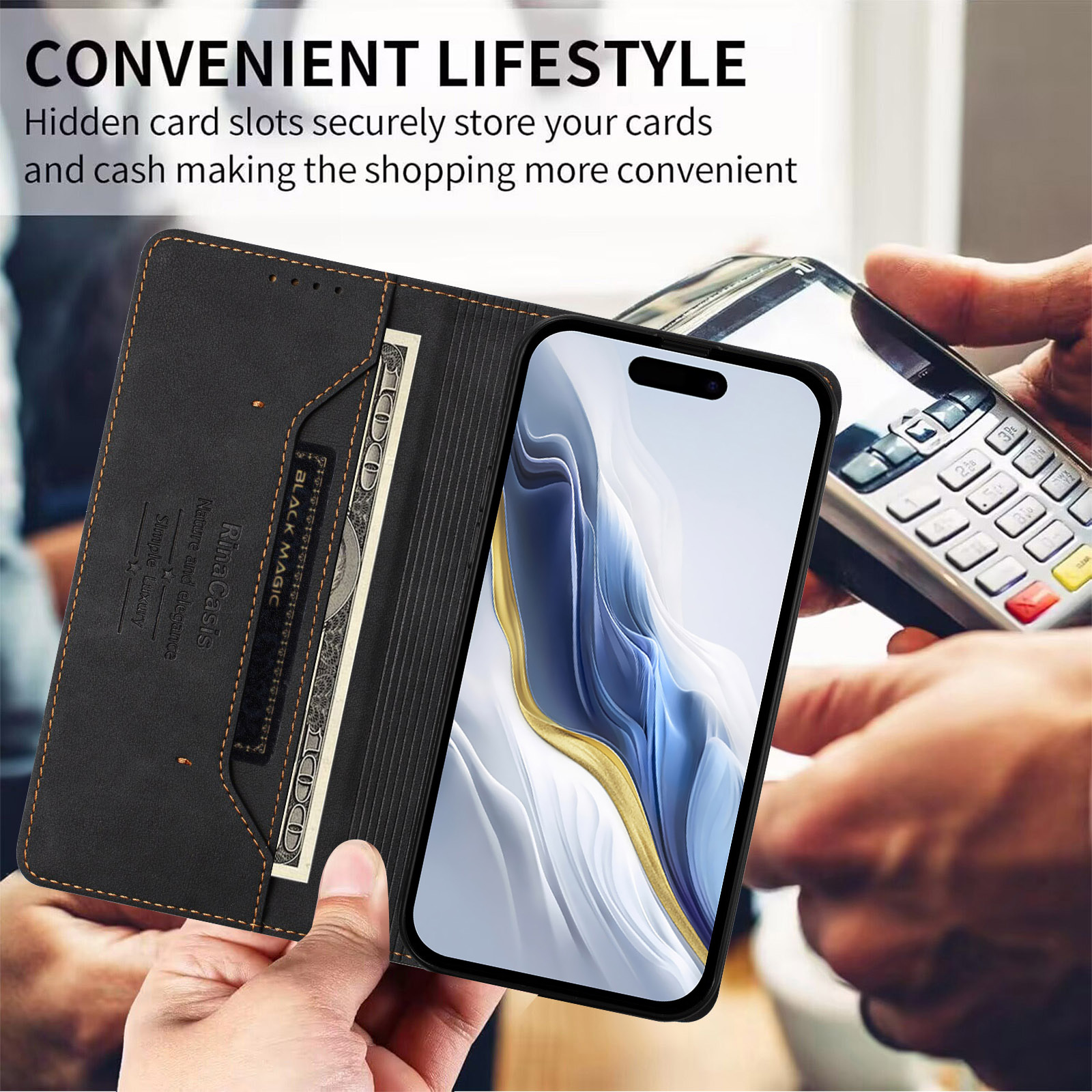 - Premium PU Leather and TPU Material Crafted from high-quality PU leather and flexible TPU, this case provides a soft, comfortable grip while offering strong durability and protection against daily wear and tear