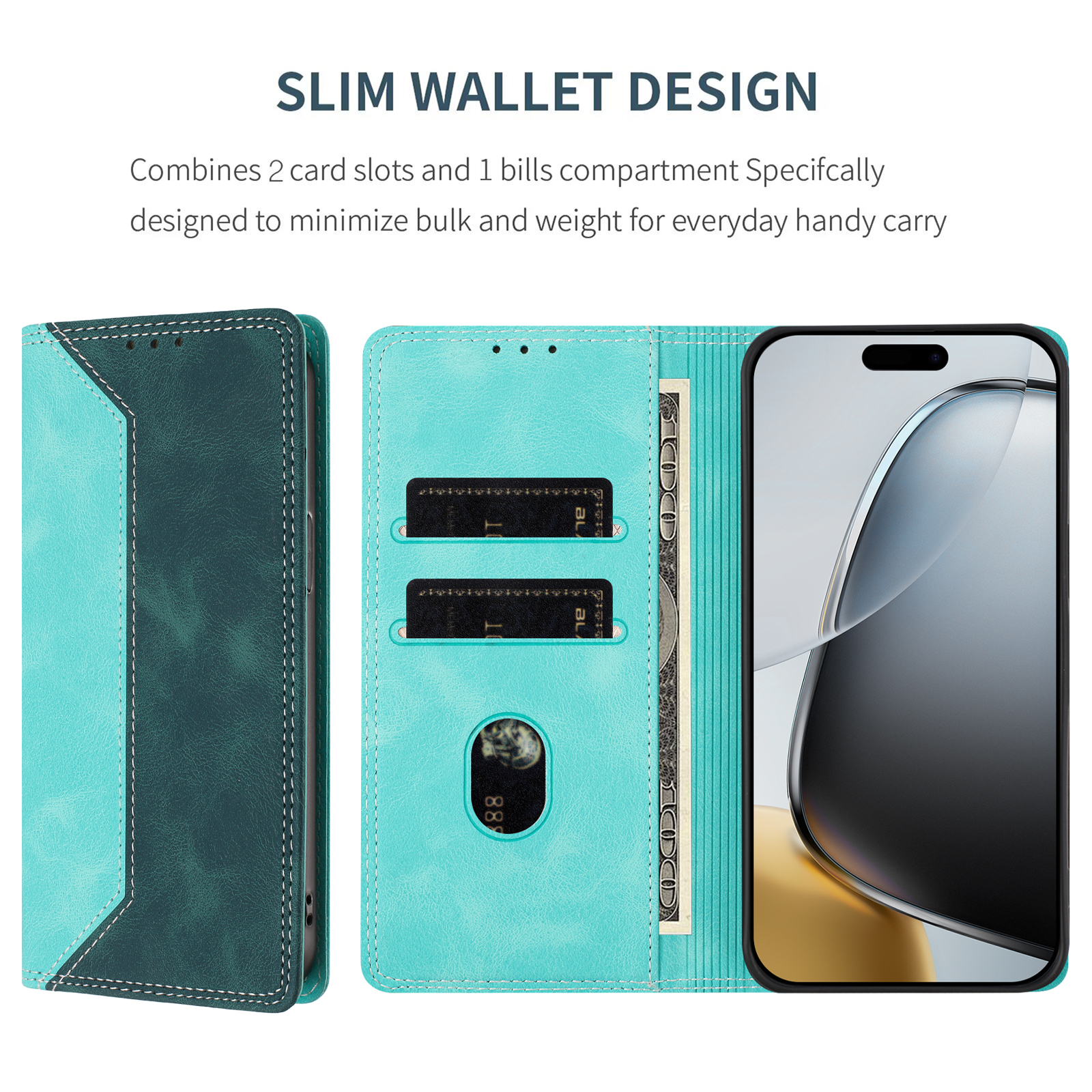 - Wallet Function Convenient design incorporates 2 card slots and a cash compartment, allowing you to carry essential cards and cash with your phone