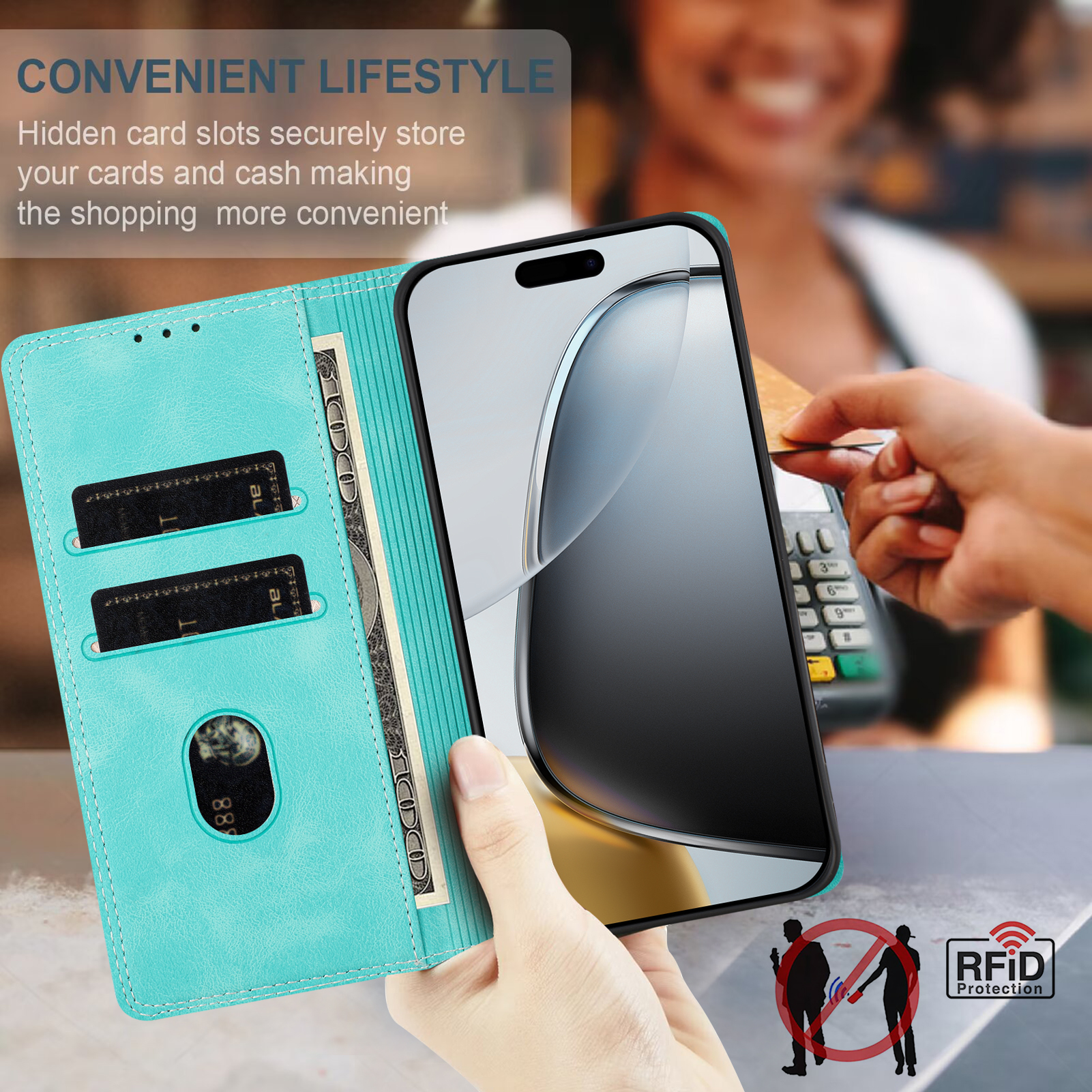 - RFID Blocking Function It can shield RFID signals, protect personal information from unauthorized scanning of your cards to prevent stealing information and account balance