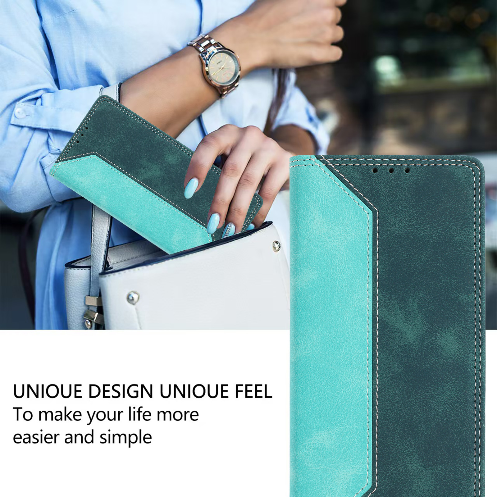 - Stylish Splicing Color Design The contrast between the colors enhances the aesthetic appeal, adds a modern and trendy look to your phone, making your device stand out