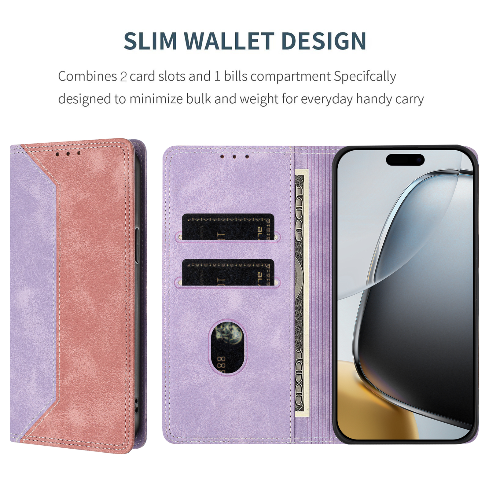 - Wallet Function Convenient design incorporates 2 card slots and a cash compartment, allowing you to carry essential cards and cash with your phone
