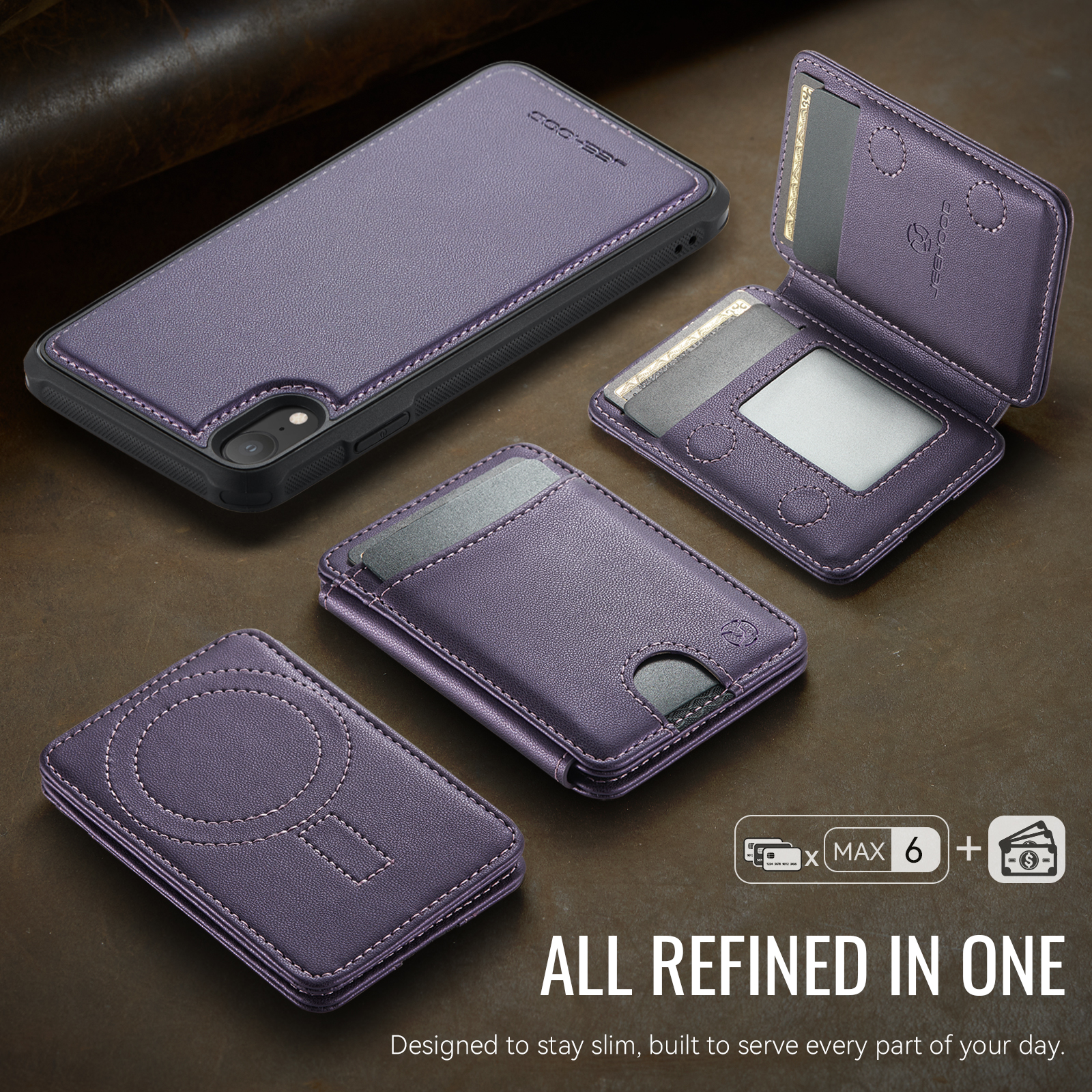 - Multi-Card Design Features 2 card slots on the front, and 4 additional card slots (1 photo slot + 3 card slots) inside for maximum organization.