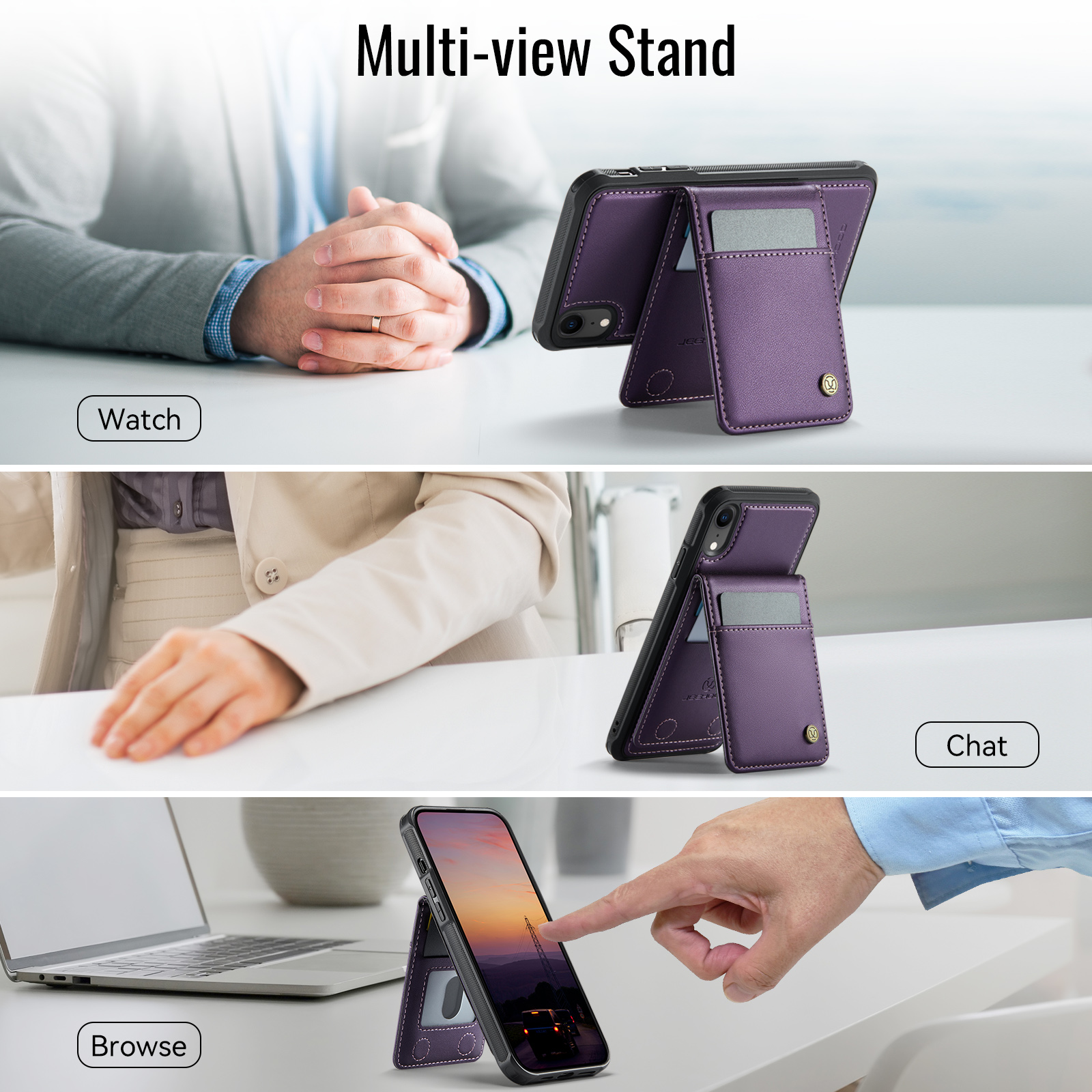 - Hands-free Viewing Kickstand The card holder doubles as a kickstand, making it easy to watch videos, read, or use your phone hands-free, enhancing your daily convenience