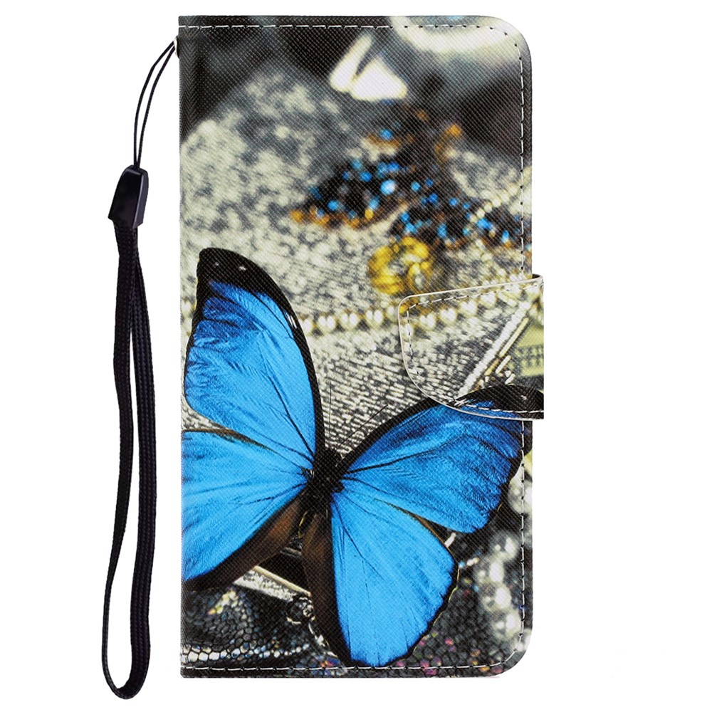 For iPhone XR 6.1 inch Phone Case Stylish Pattern Printing PU Leather Wallet Strong Magnetic Flip Stand Folio Phone Cover with Strap - Blue Butterfly $15.64