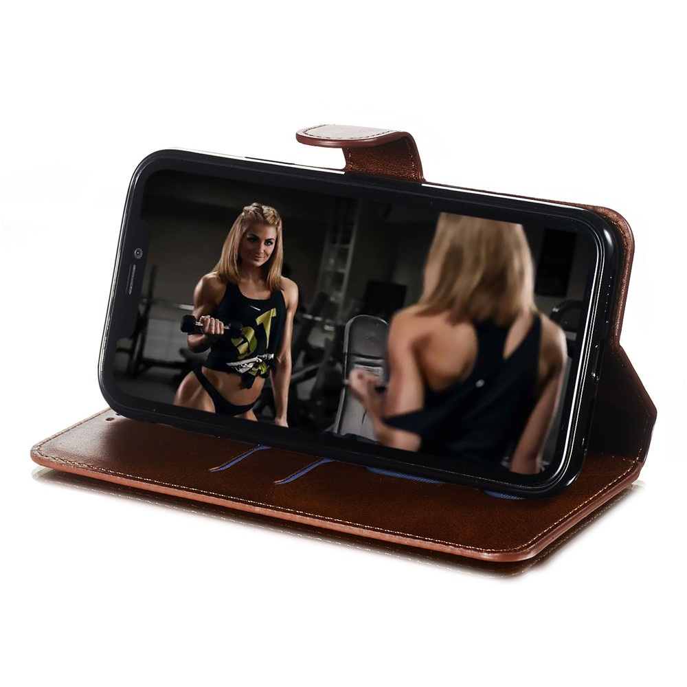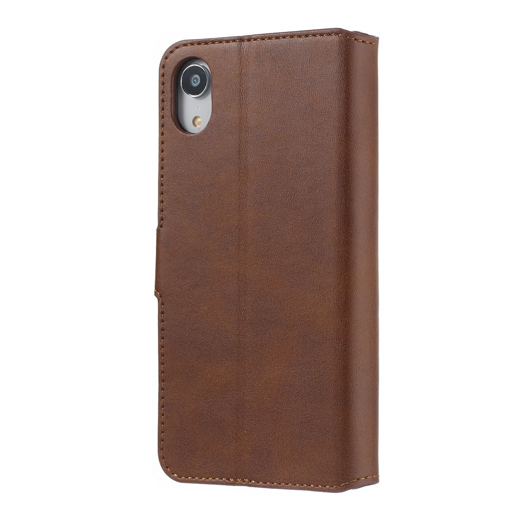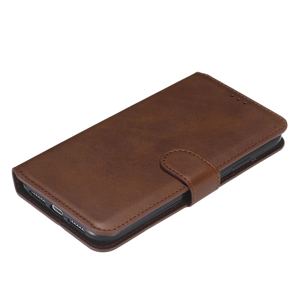 For iPhone XR 6.1 inch Solid Color Flip Leather Wallet Mobile Phone Covering – Brown