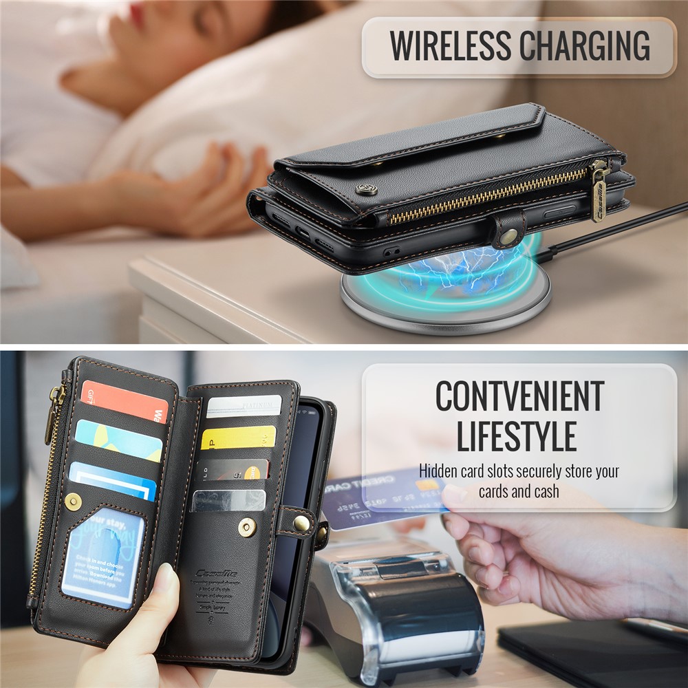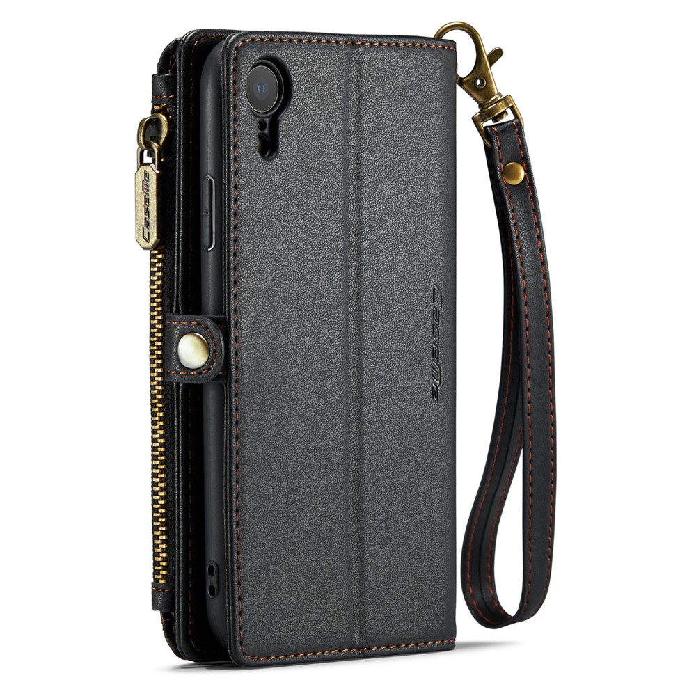 For iPhone XR Leather Case CASEME C36 Zipper Multiple Card Slots Phone Cover with Straps – Black