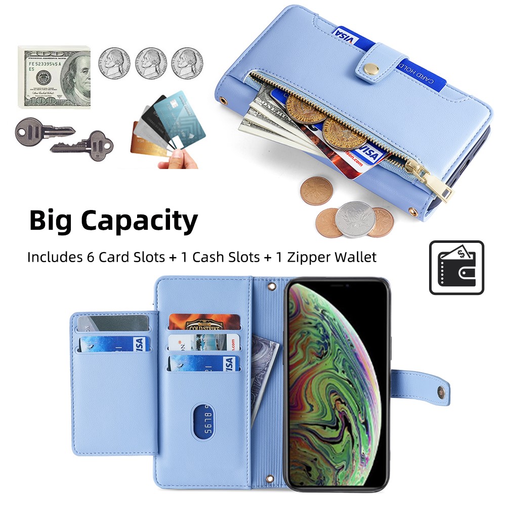 - Massive Storage Capacity Includes 6 card slots, 1 cash pocket, and 1 zippered coin wallet—ideal for organizing cards, bills, coins, and small essentials
