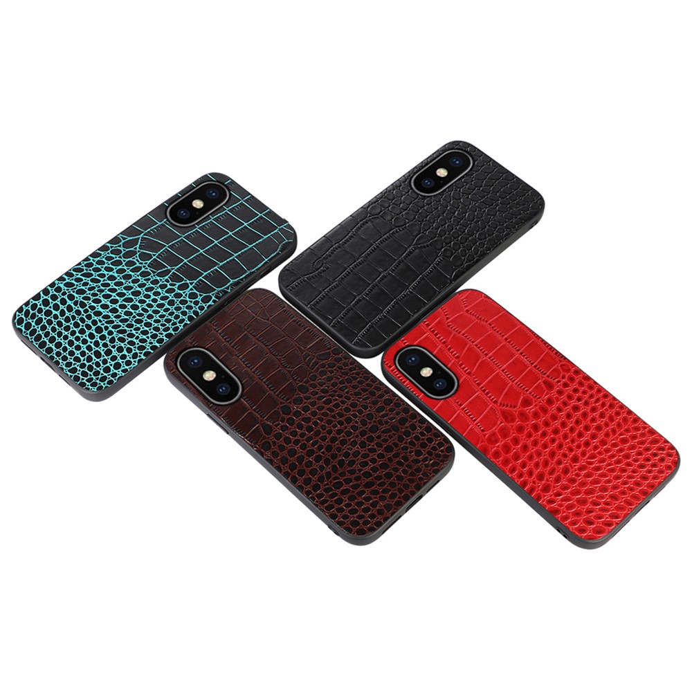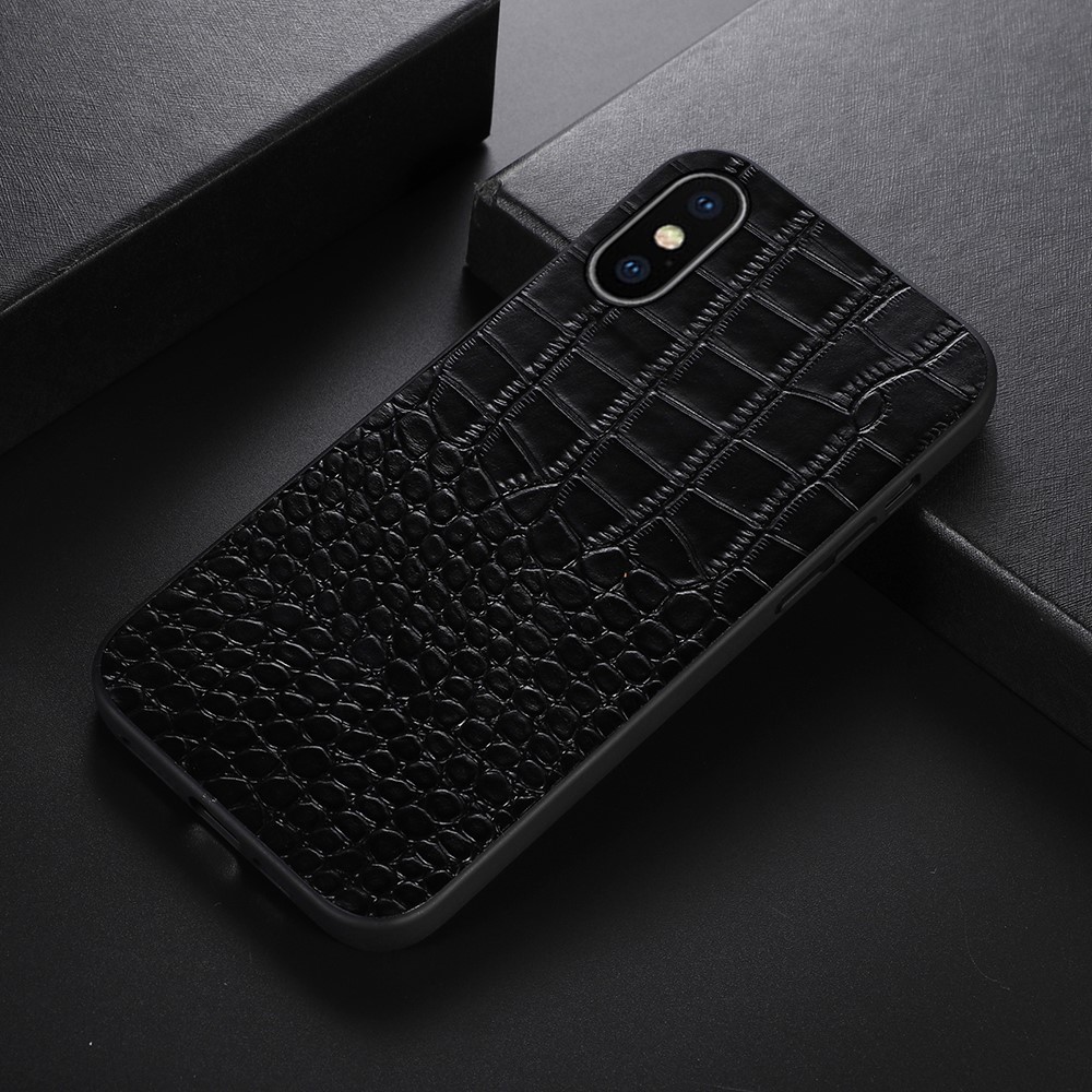 For iPhone XS Max 6.5 inch Crocodile Texture Phone Cover Genuine Cowhide Leather Coated PC + TPU Hybrid Case – Black