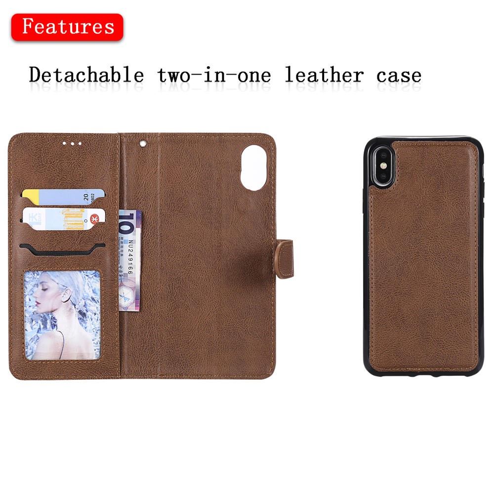 Innovative 2 in 1 design: detachable PU leather wallet and PU leather coated TPU case. They can absorb together by strong magnetism.