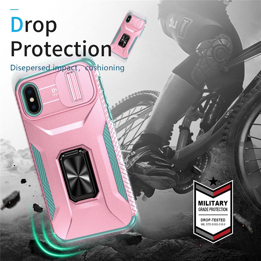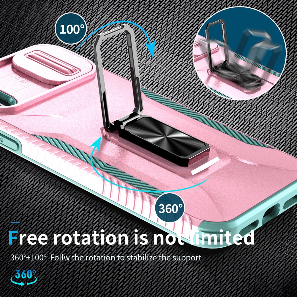 - Designed with a metal ring kickstand for horizontal and vertical screen supports