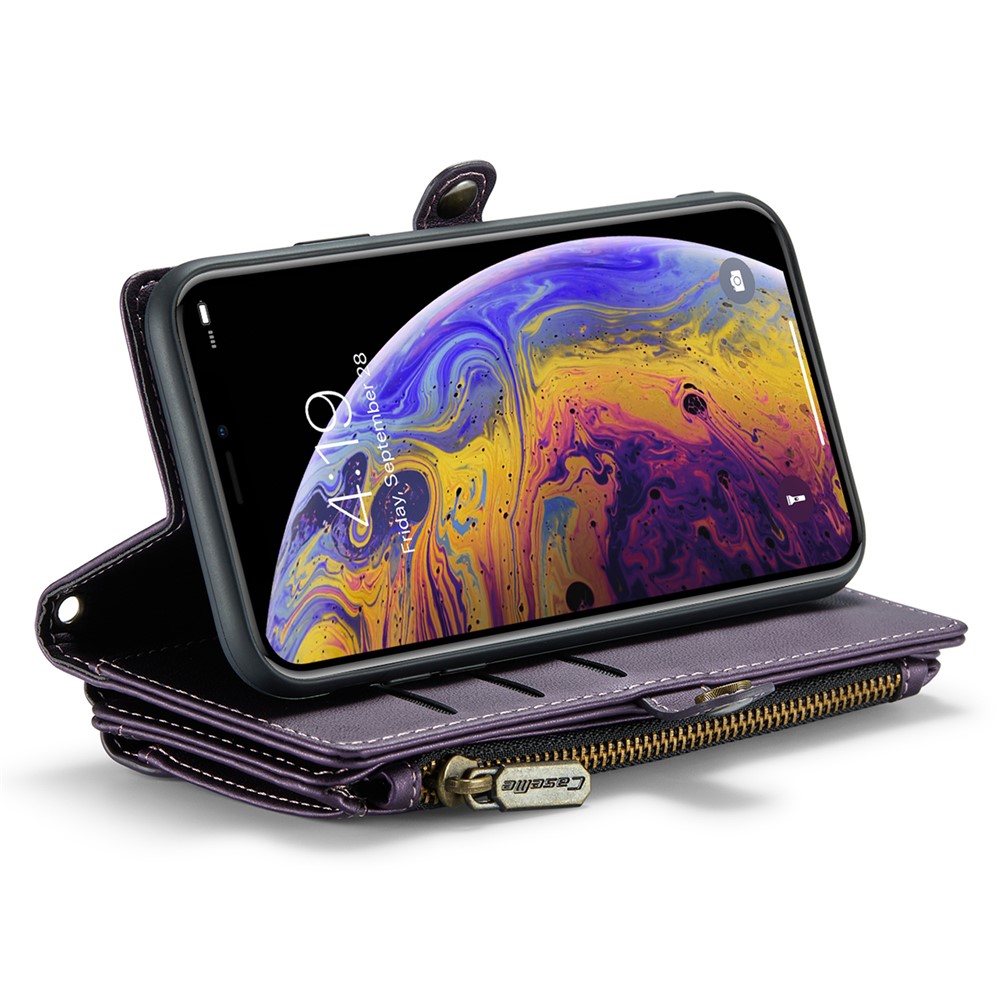 For iPhone XS Max Leather Case CASEME C36 Zipper Multiple Card Slots Phone Cover with Straps – Purple