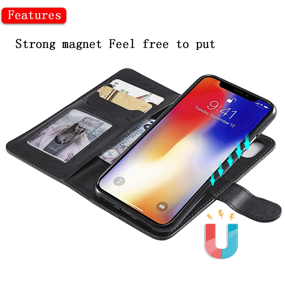 Innovative 2 in 1 design: detachable PU leather wallet and PU leather coated TPU case. They can absorb together by strong magnetism.