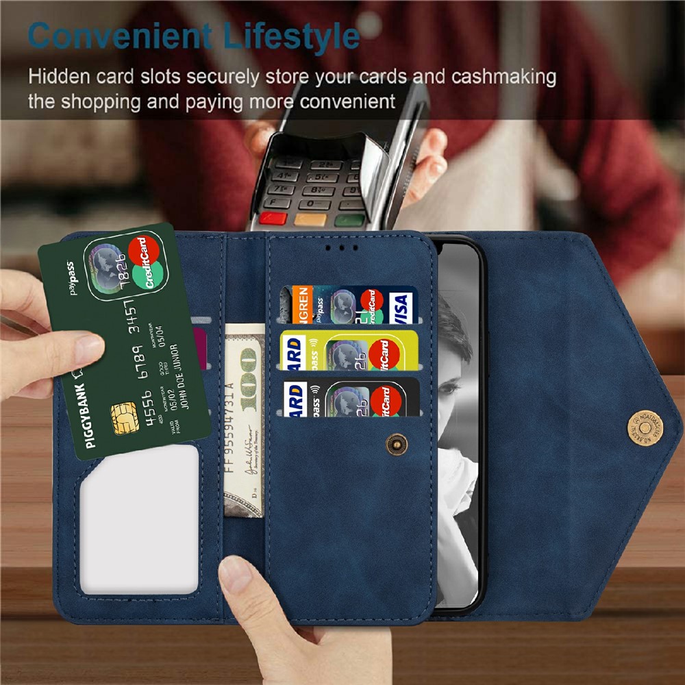 Multiple card slots and cash pockets to conveniently store ID card, credit cards and money