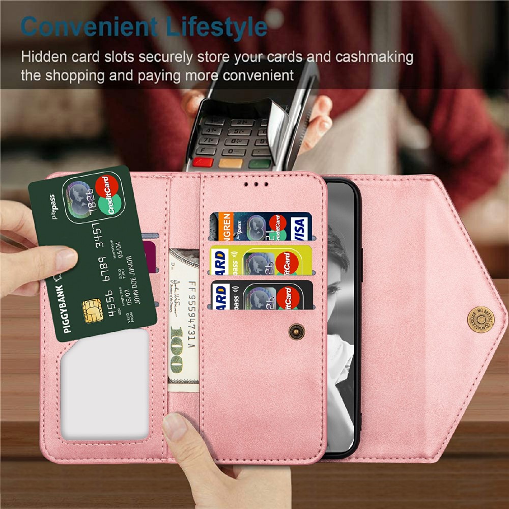 Multiple card slots and cash pockets to conveniently store ID card, credit cards and money