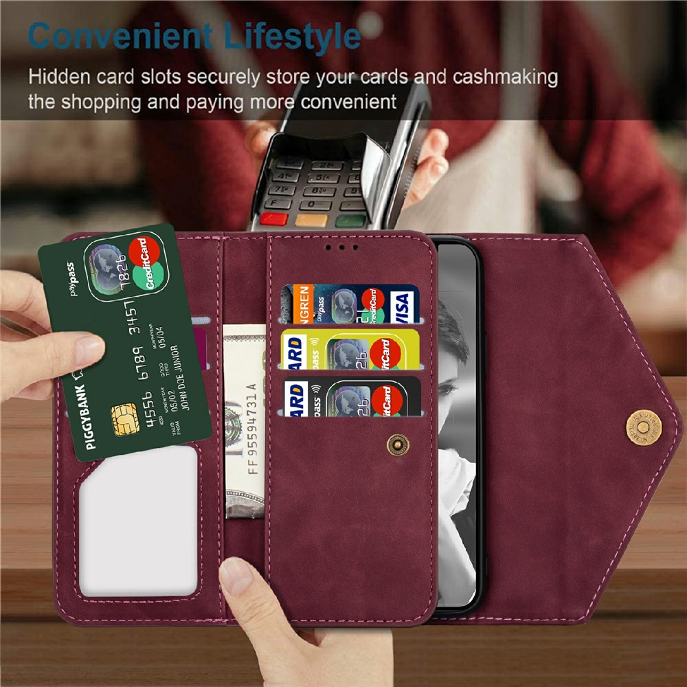 Multiple card slots and cash pockets to conveniently store ID card, credit cards and money
