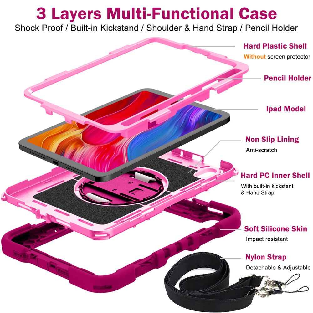 - 360-Degree Kickstand Features an integrated 360-degree rotary kickstand, allowing hands-free viewing in both landscape and portrait modes, not only with a kickstand, but also with a hand strap