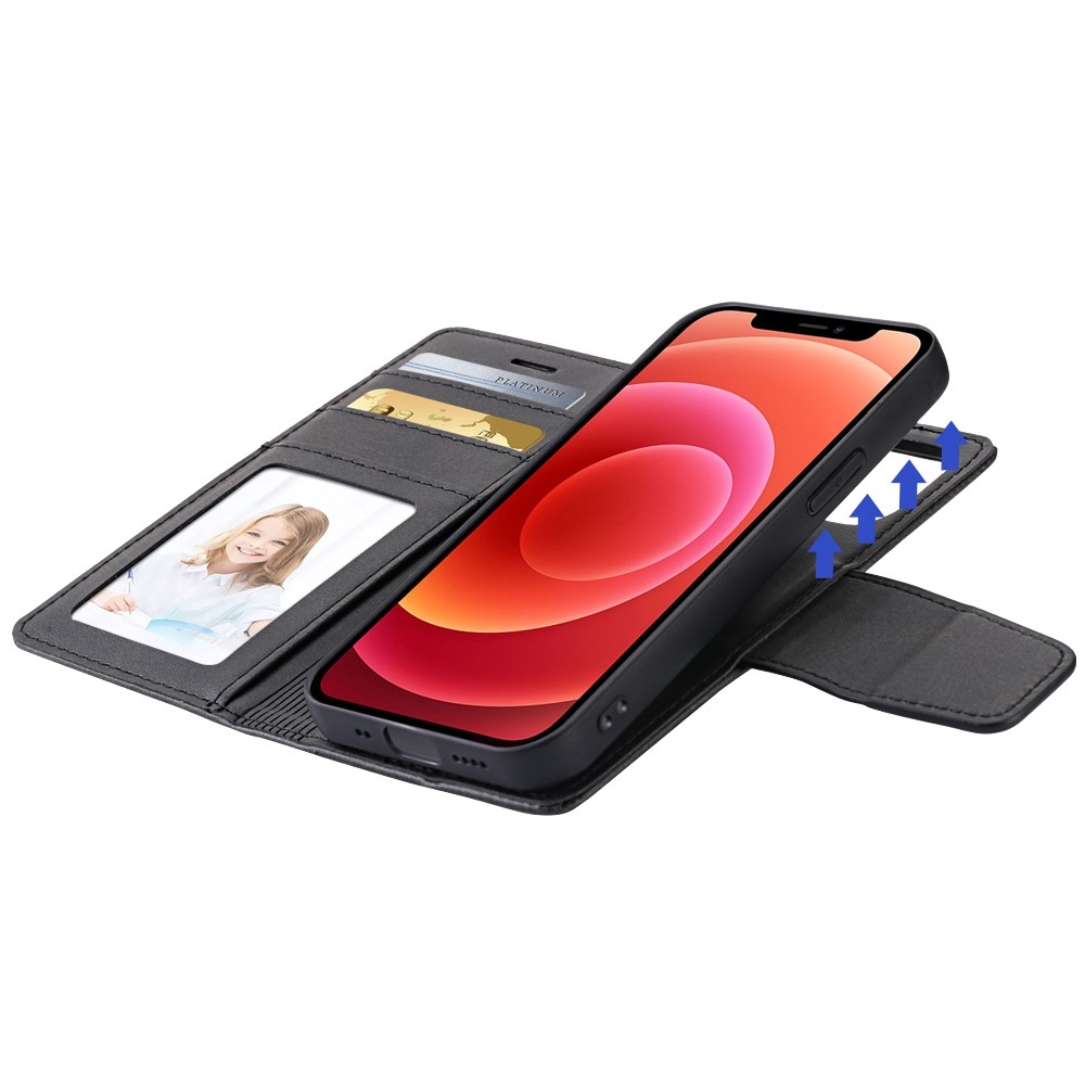 This case features a two-in-one design with a PU leather wallet case and a detachable leather coated TPU back shell, which can be attached together by magnetic snap fastener. High quality materials with exquisite workmanship ensure an elegant look and comfortable hand feeling. Moreover, 2 card slots, 1 photo slot and 1 cash compartment inside allow you to carry around your essential ID, credit cards and cash with your phone without having to take an extra heavy wallet.